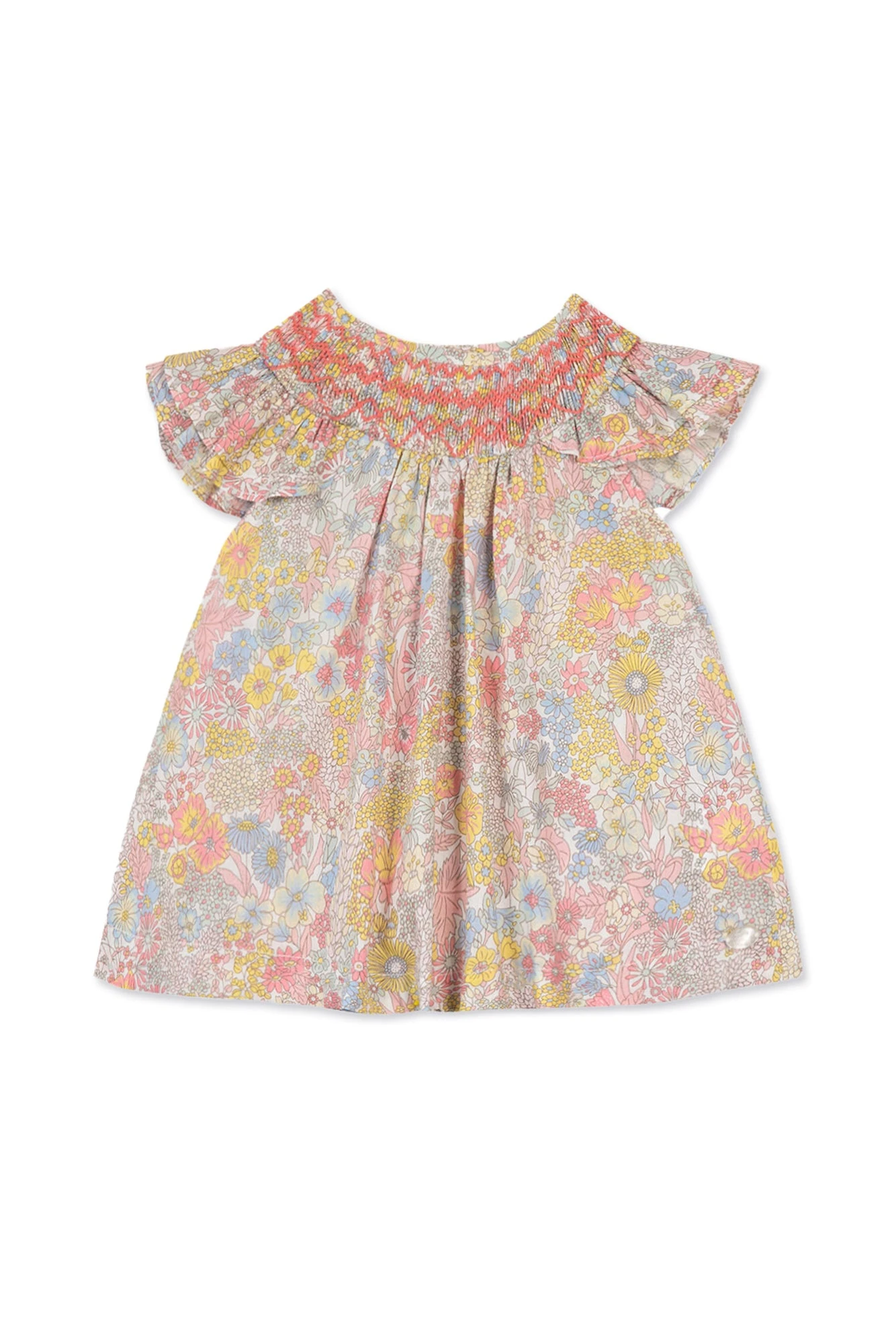 Cette jolie blouse jaune est agrémentée d’un adorable tissu liberty, de broderies réalisées à la main ainsi que de détails smockés. On craque pour ce mélange de couleurs apportant une touche d’éclat aux tenues des petites filles. La blouse est dotée de boutons au dos pour faciliter l’habillage. On adore l’associer à un short de la même collection pour un total look.
