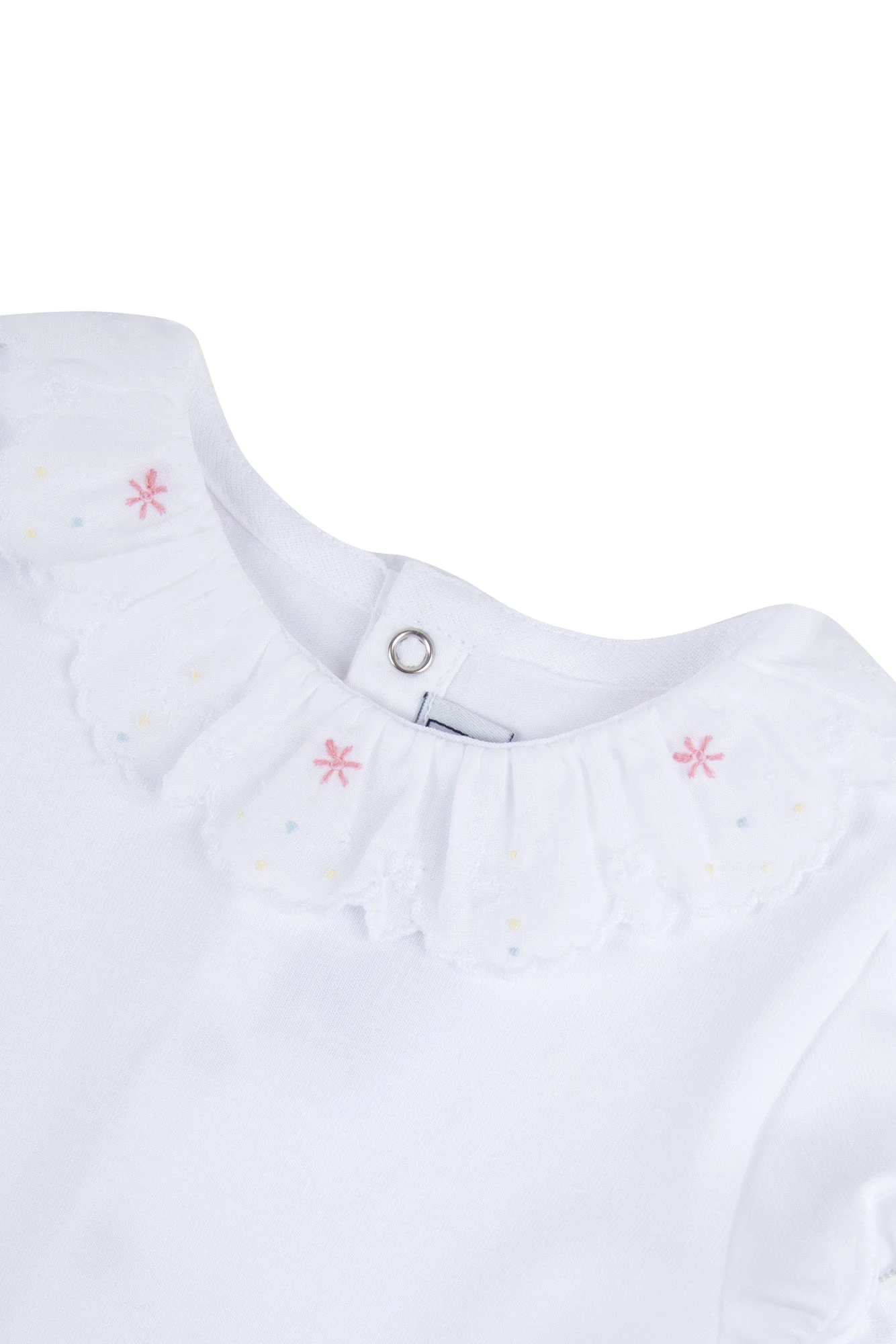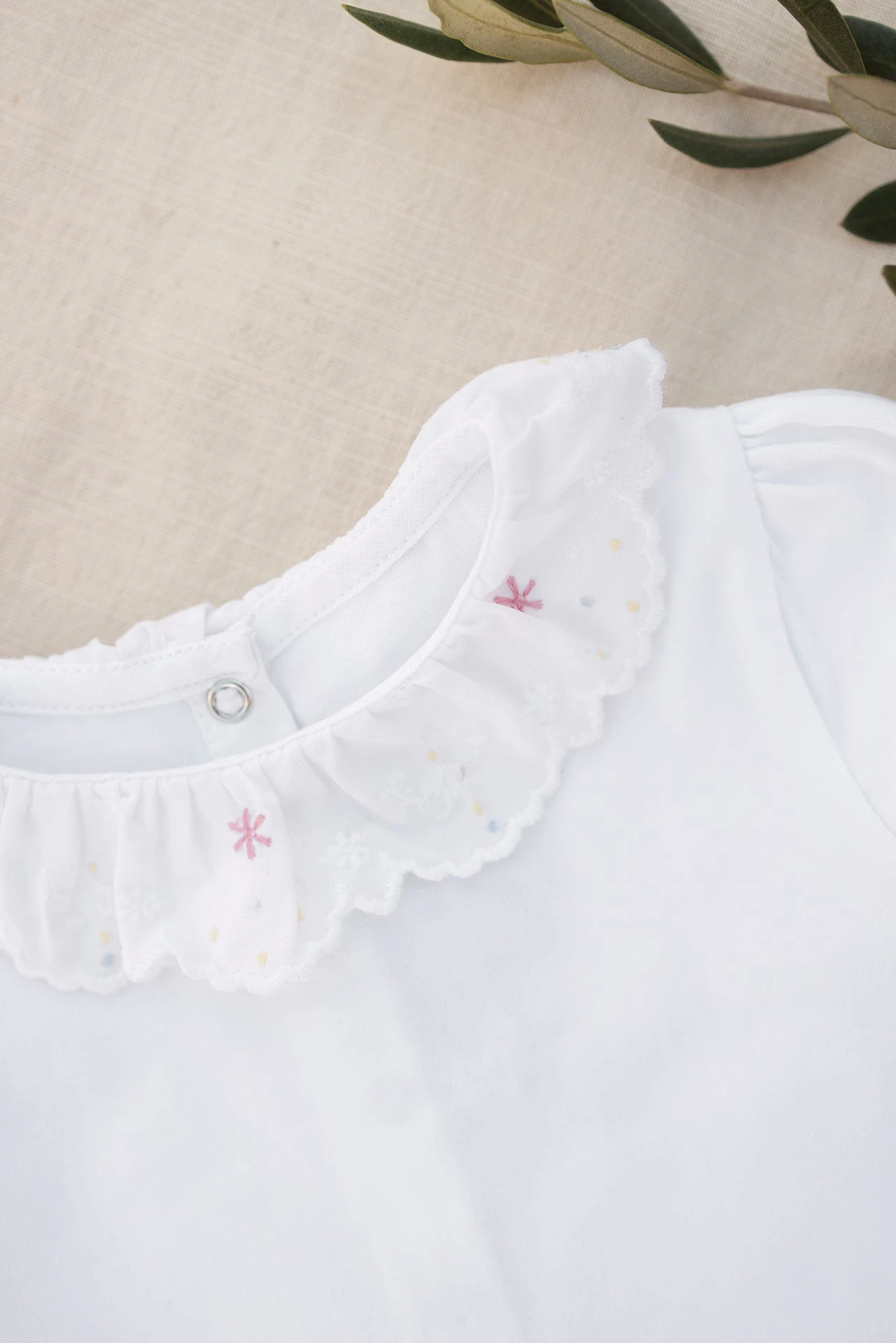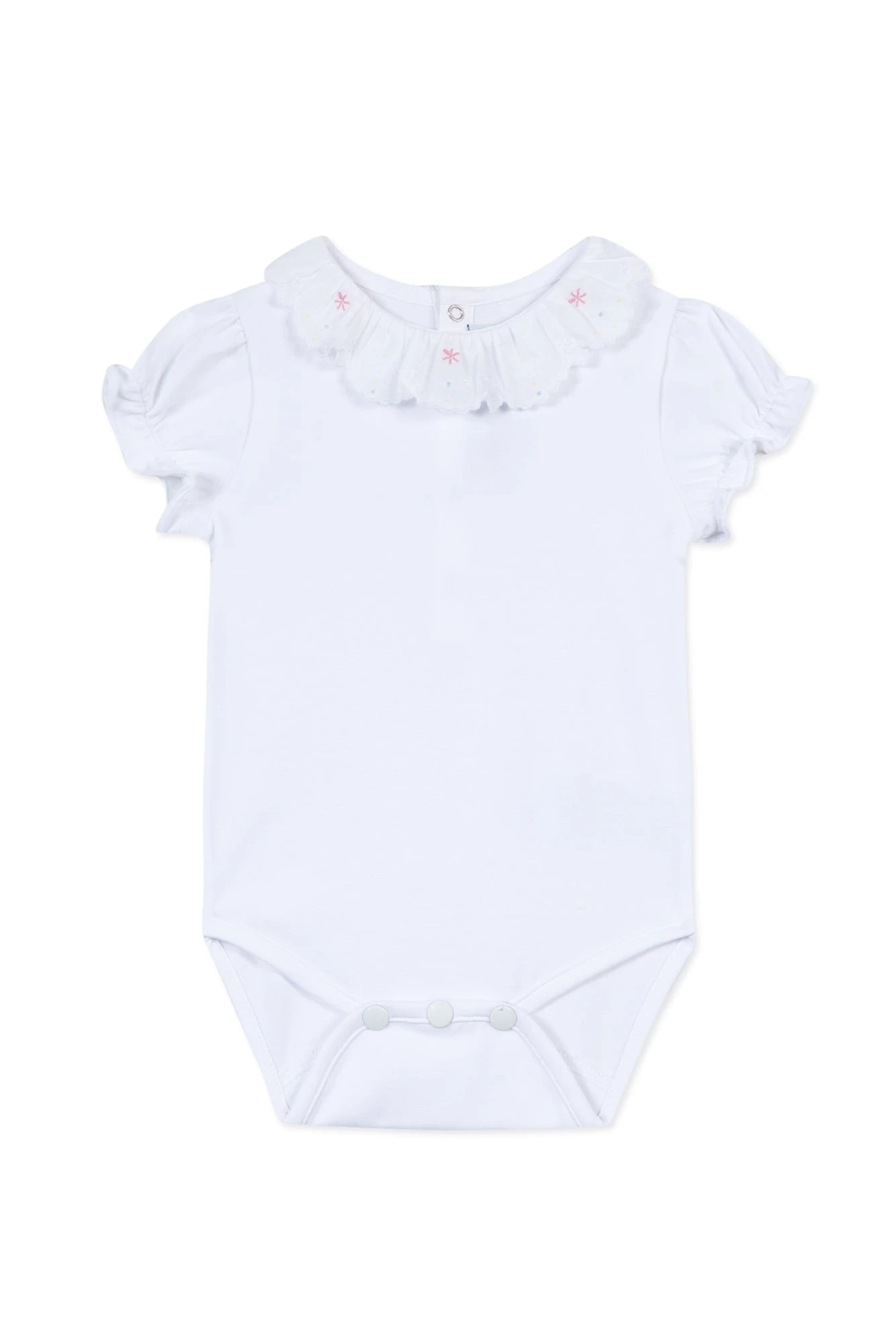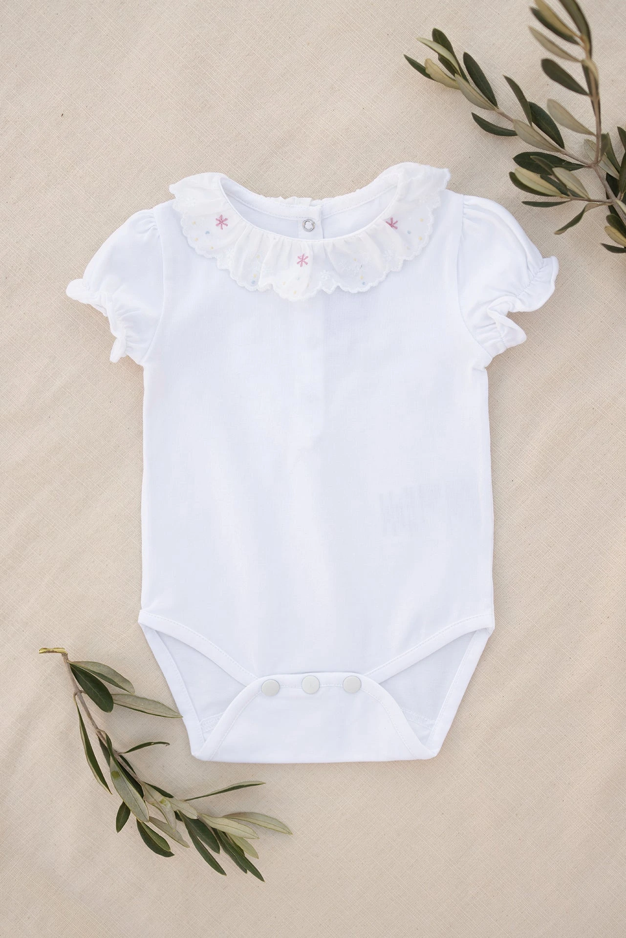 Subtile et délicat, ce body blanc aux manches ballons laisse place à la nostalgie de notre enfance. Son col est orné de petit détails fleuris. Ses matières douces et adaptées au confort des plus petits créent un cocon de bien-être pour les amoureuses des jolies fleurs. Le body est doté de boutons pression au dos et à l’entrejambe pour faciliter l’habillage. Parfait pour toutes les occasions : premières sorties, premiers quatre pattes ou encore cérémonies, ce body s’accorde délicatement avec un bloomer et un cardigan assorti. Fabriqué en Europe.