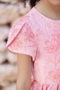 Bonnet imprimé inspiration Toile de Jouy rose dessiné par Tartine et Chocolat en velours assorti au pyjama du thème Toile de Jouy.