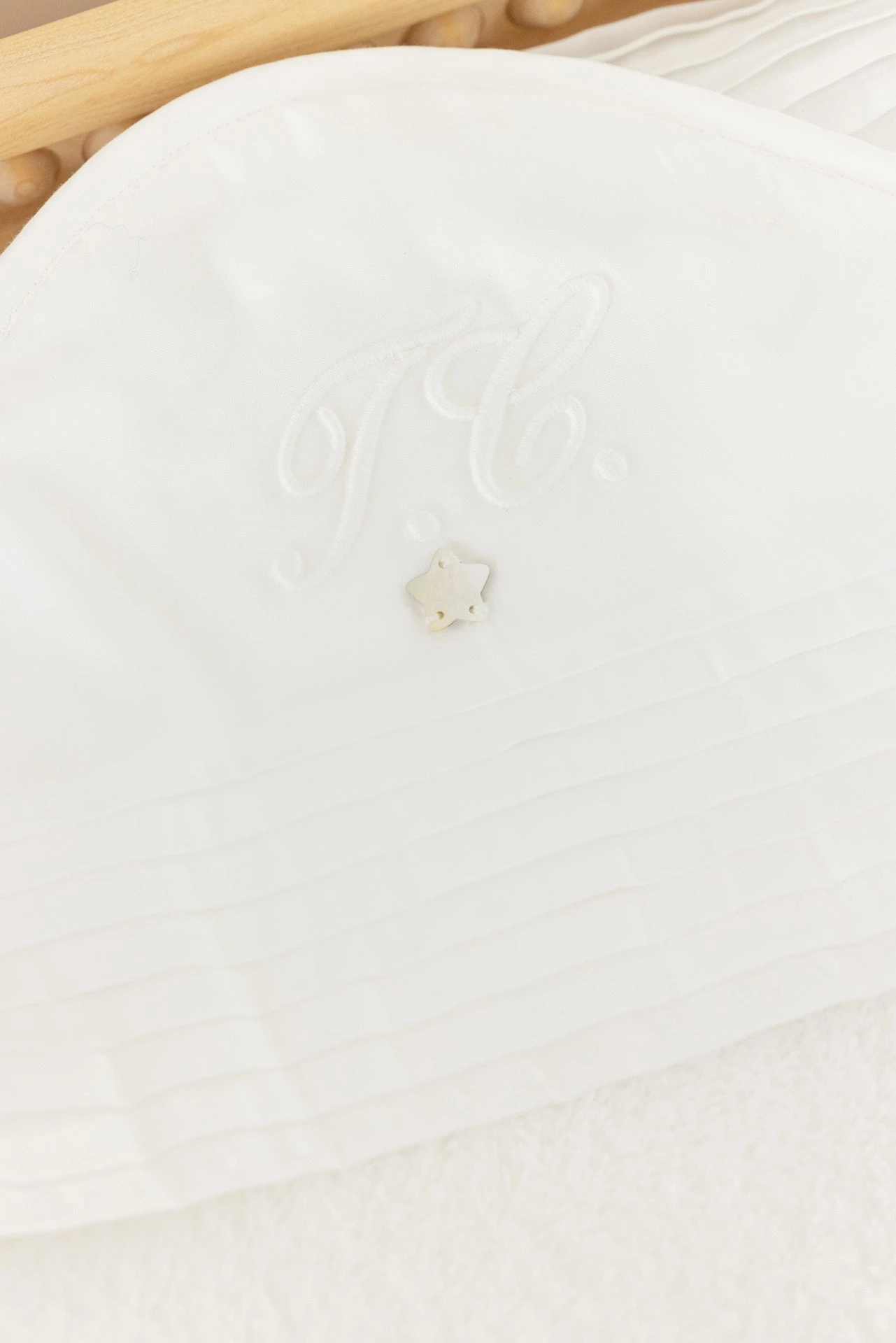 La ligne Monogramme : Etoiles effet nacre, plis religieux et broderies réhaussent avec délicatesse l’élégance et la pureté de cette ligne. Discret et chic, cette ligne pour fille ou garçon est un véritable cocon de blancheur.
