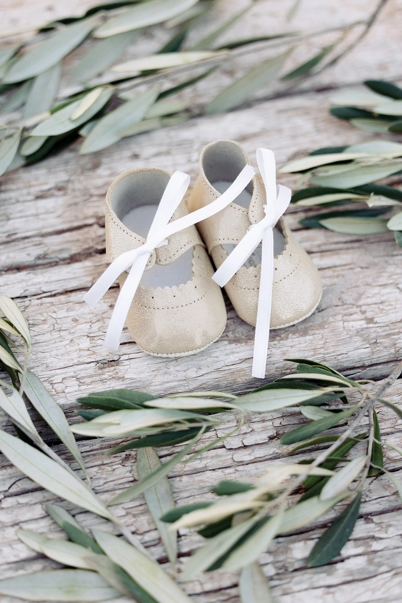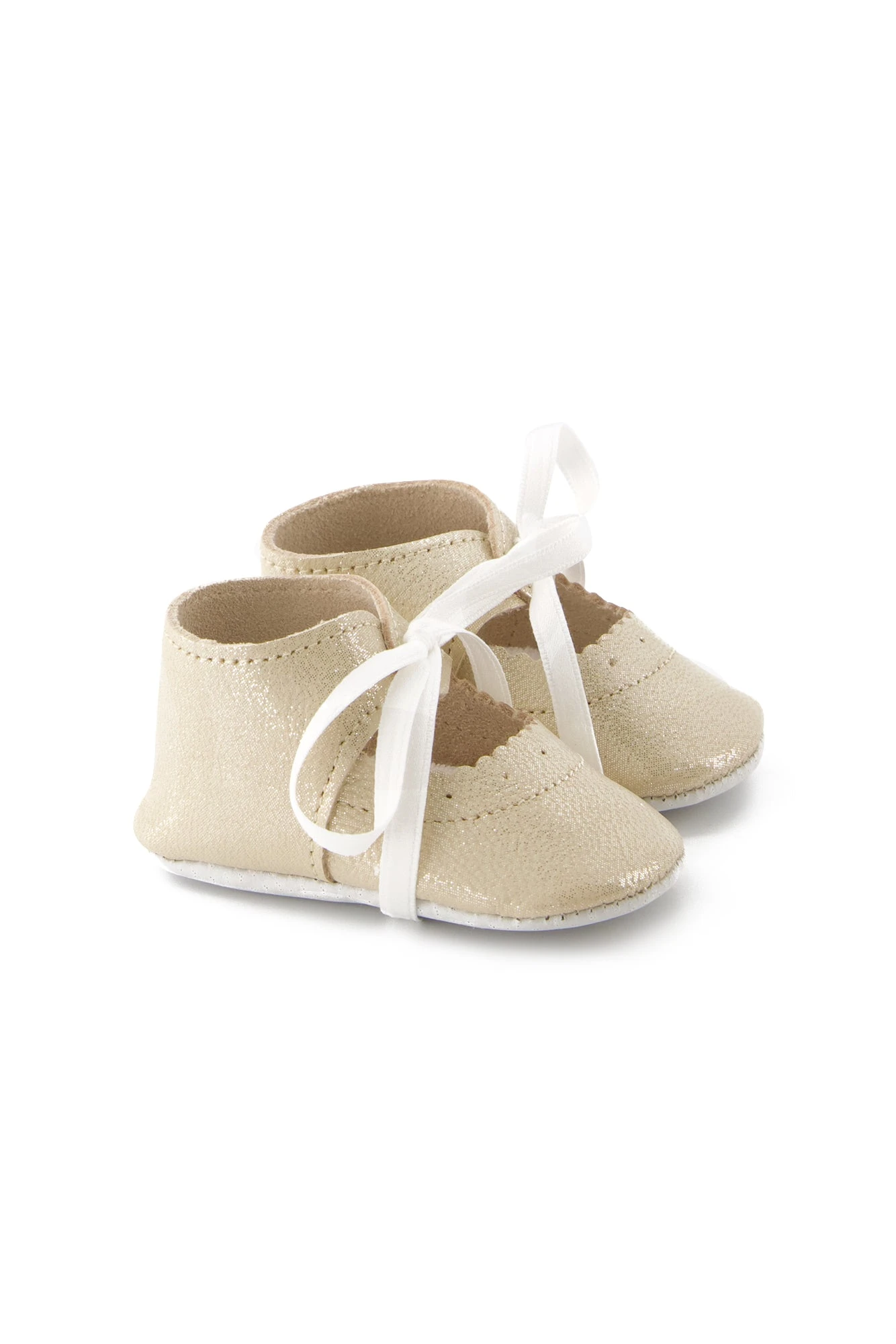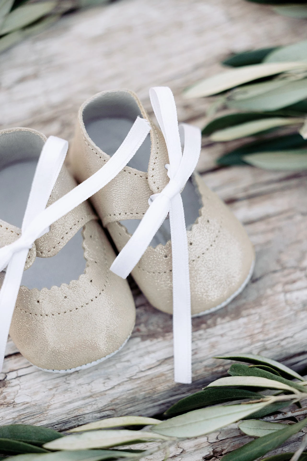 Préparez les premières sorties élégantes avec ces beaux chaussons dorés en 100% cuir. On adore le joli motif ajouré à l’avant ainsi que le lacet qui leur apportent un véritable raffinement. Idéales pour toutes les occasions: le quotidien ou les cérémonies, on aime les associer avec une jolie robe.