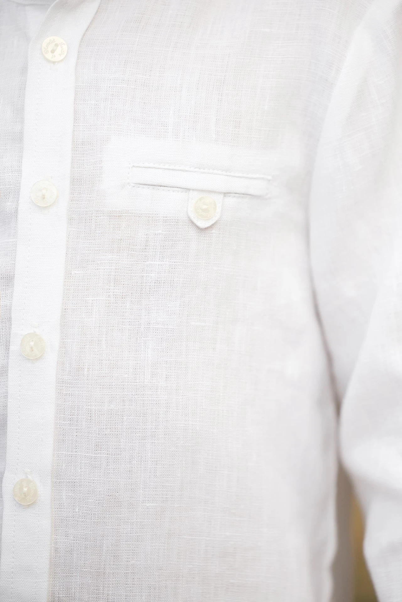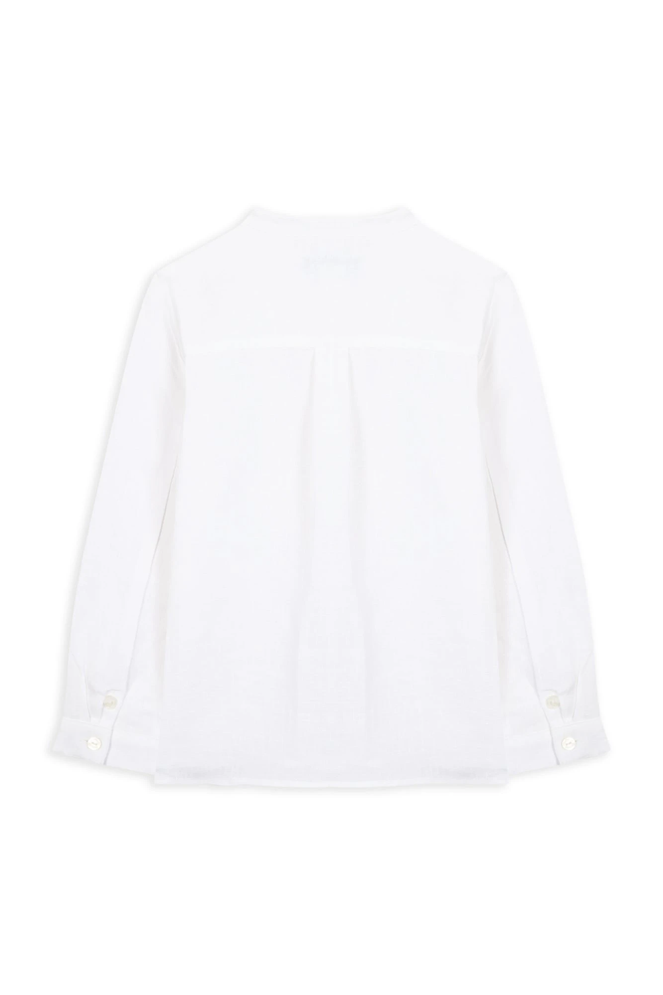 On craque pour cette magnifique chemise blanche au col mao en lin qui rendra votre petit garçon aussi élégant que les plus grands lors de cérémonies. Pour faciliter l’habillage, des boutons sont situés à l’avant de la chemise. On se plait à l’associer à un joli short de la même collection cérémonie bébé garçon pour un total look.