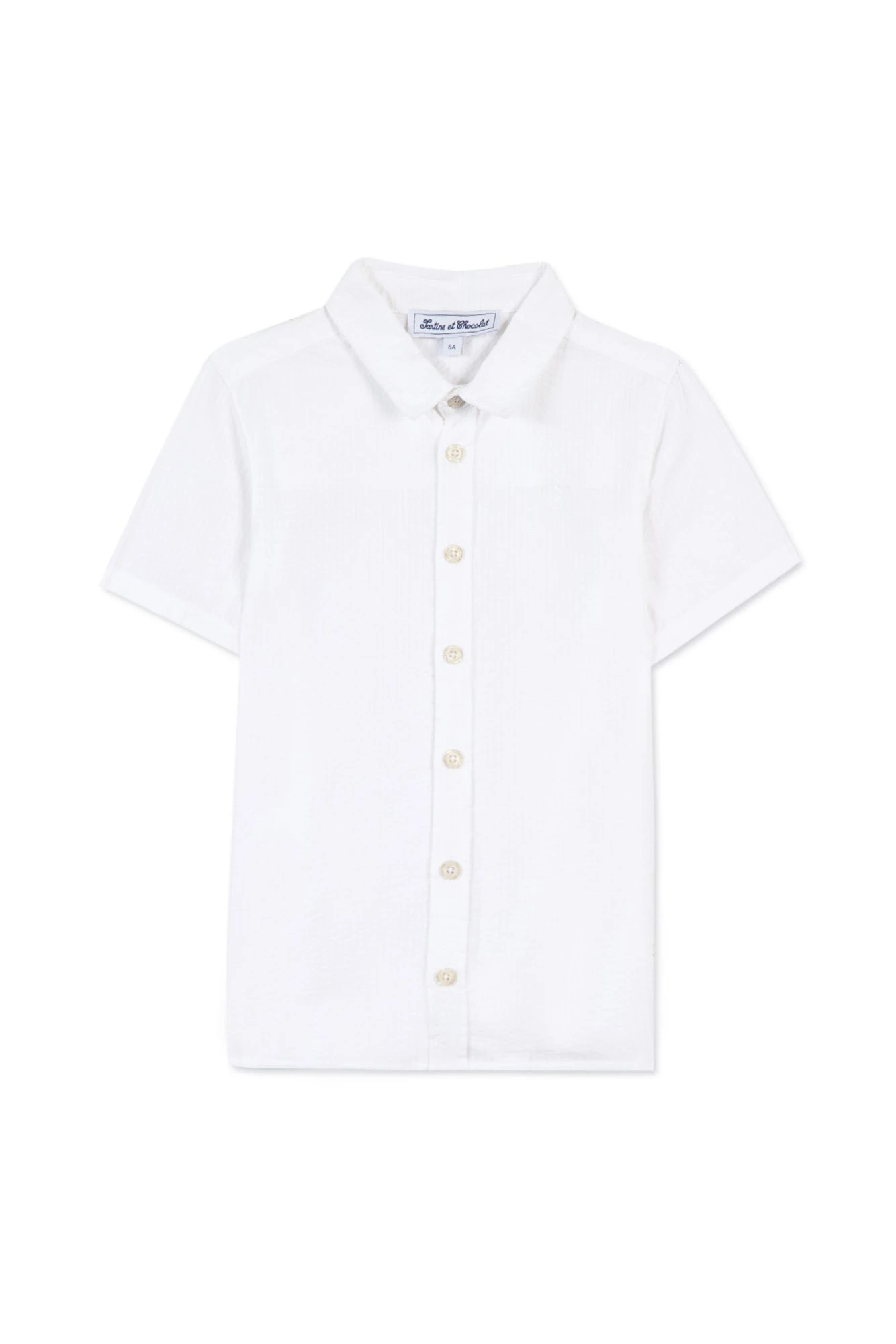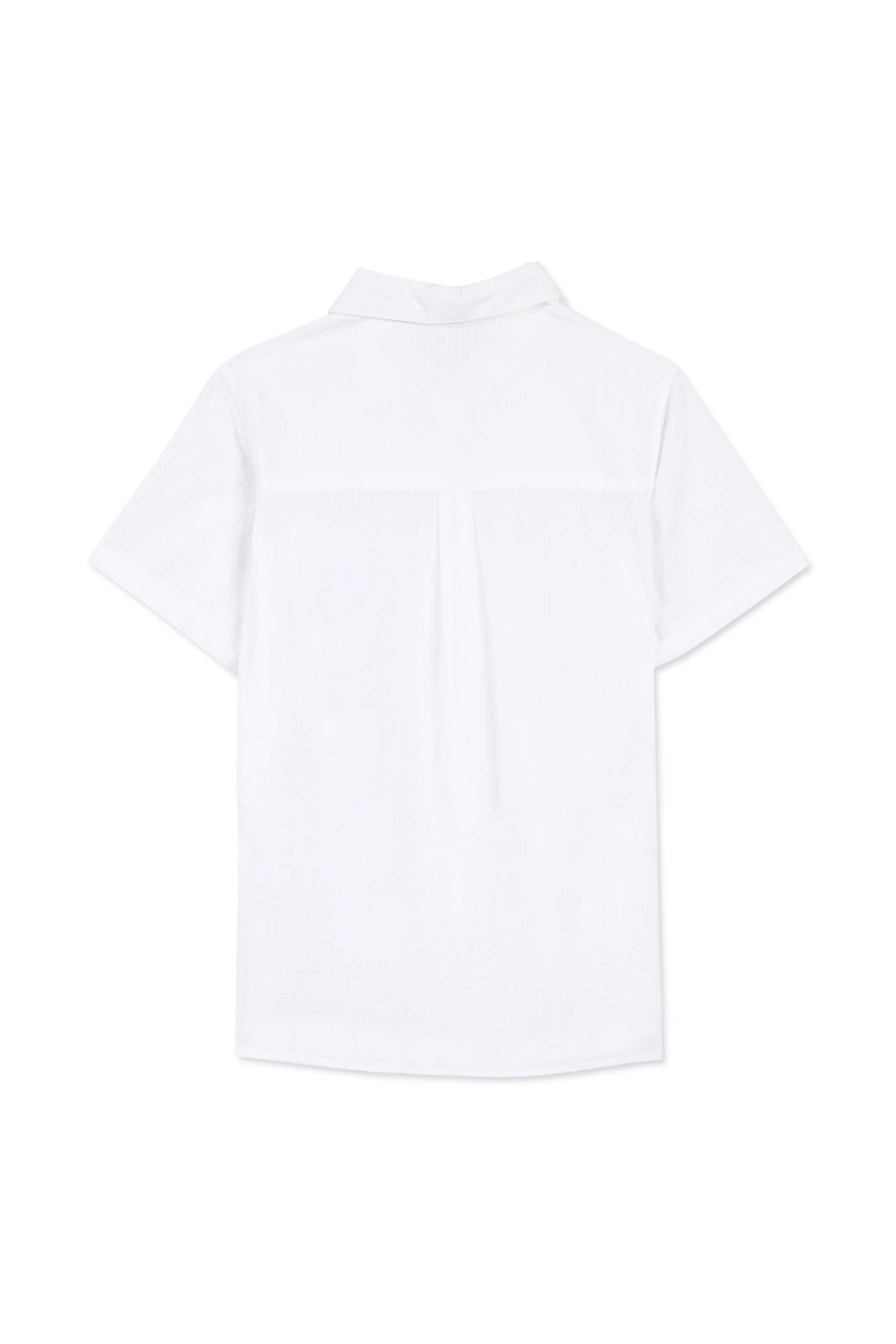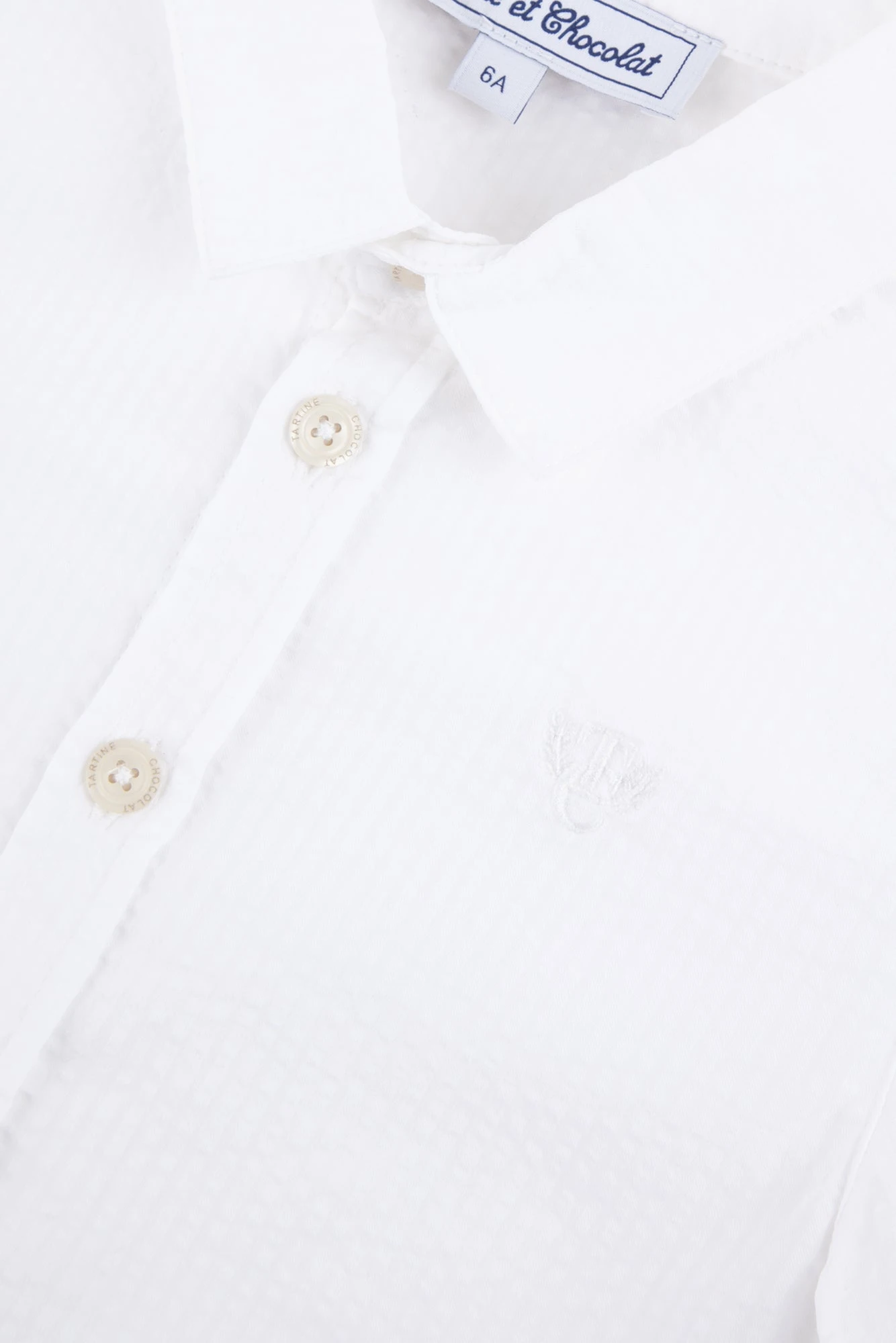 On craque sur cette chemise blanc aux rayures seersucker parfaite pour cette saison. Confectionnée en 100% coton, cette pièce sera très confortable pour votre petit garçon. Sa coupe apporte une touche supplémentaire d’élégance à la tenue. On se plait à l’associer à un short de la même collection pour un total look.