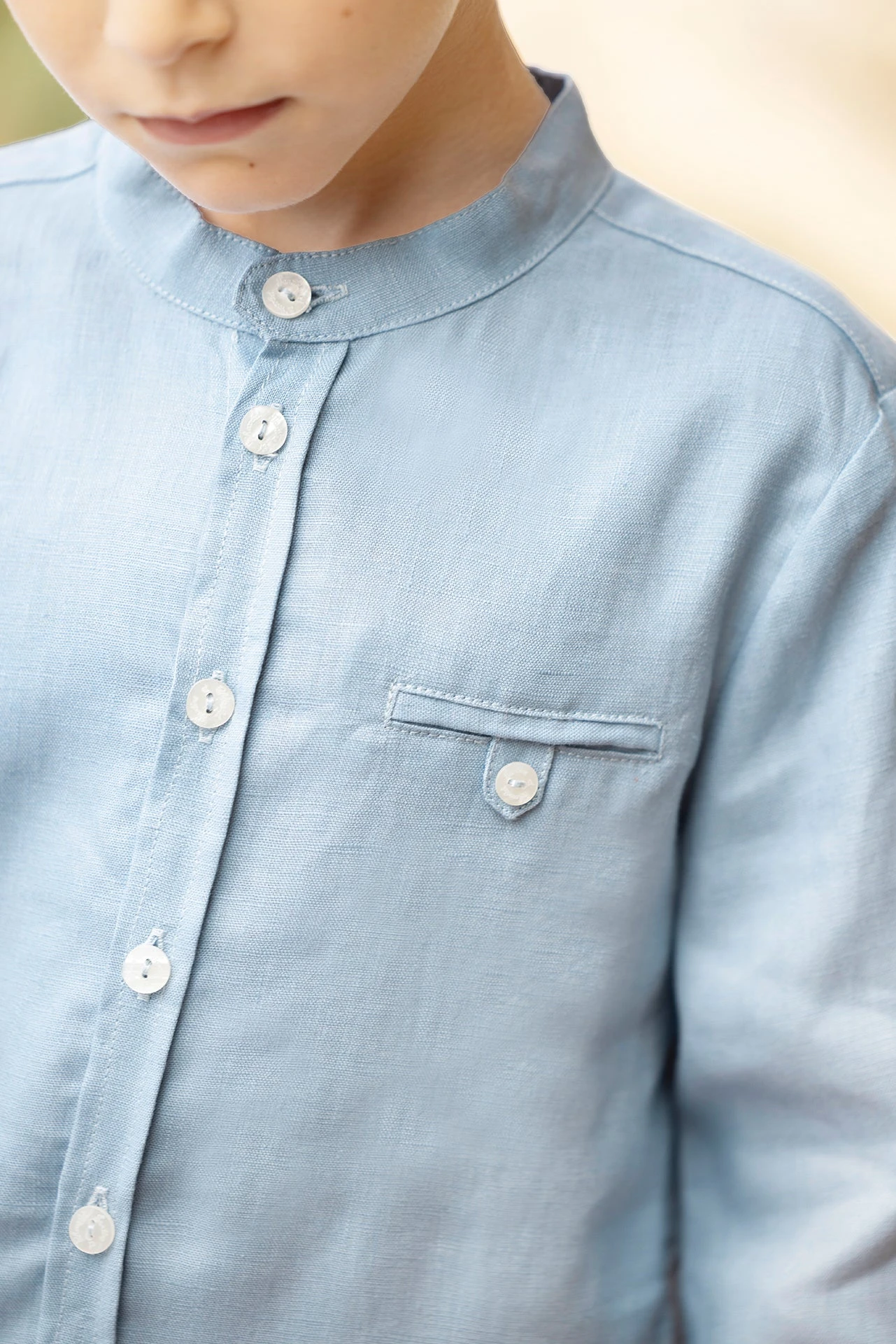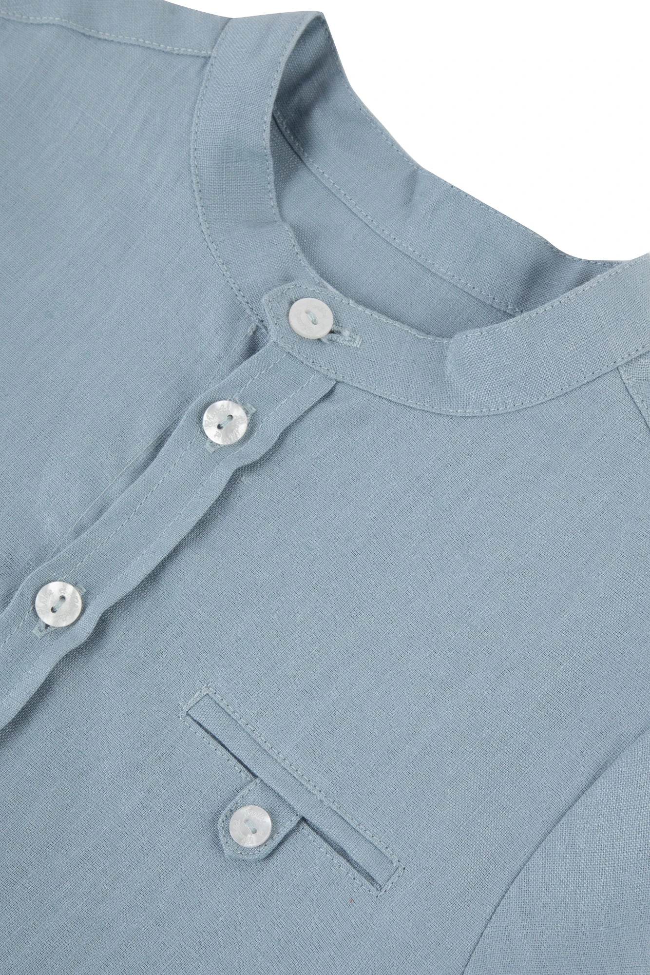 On craque sur cette chemise bleue parfaite pour cette saison. Confectionnée en lin, cette pièce sera très confortable pour votre petit garçon. Sa coupe apporte une touche supplémentaire d’élégance à la tenue. On se plait à l’associer à un short de la même collection pour un total look.