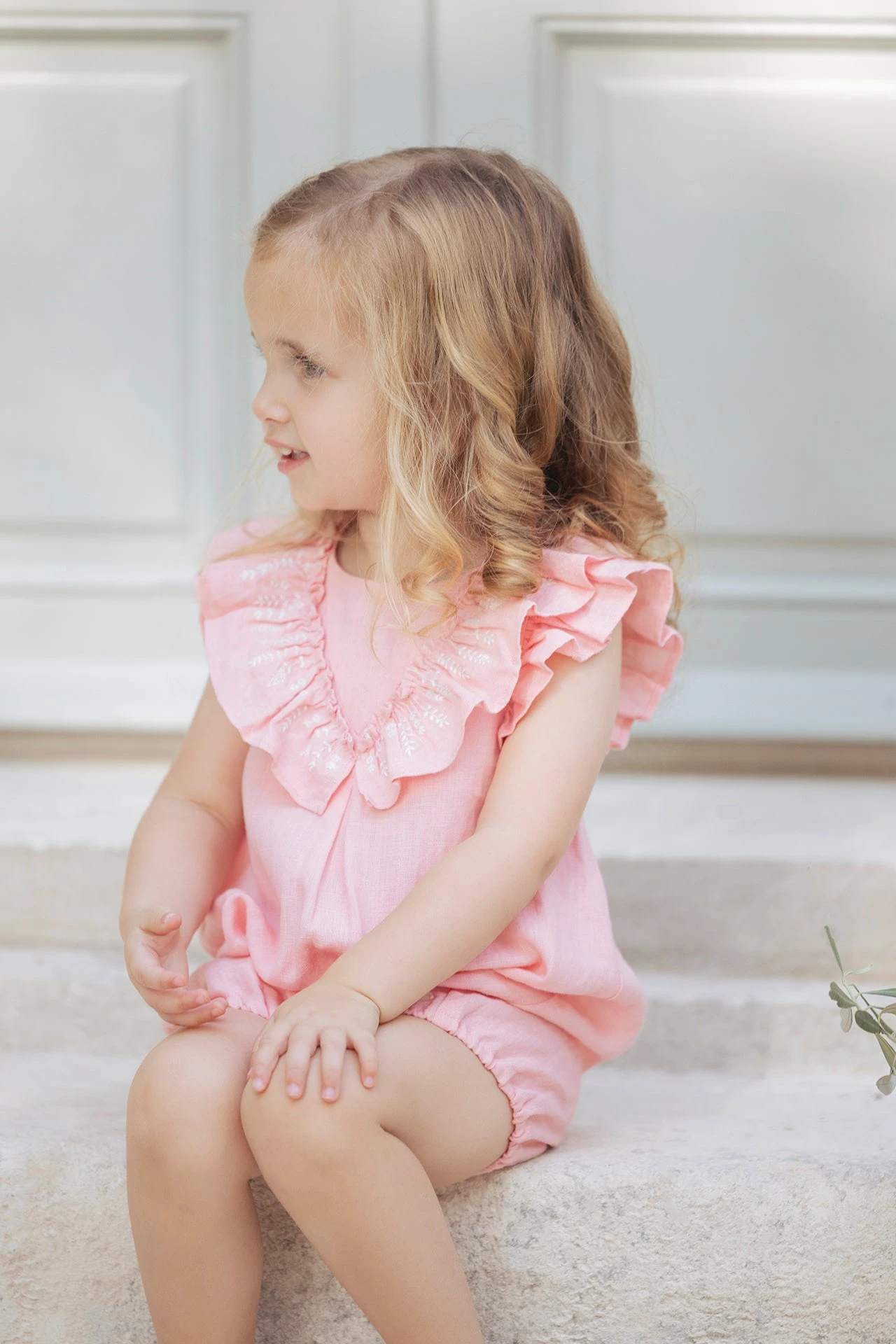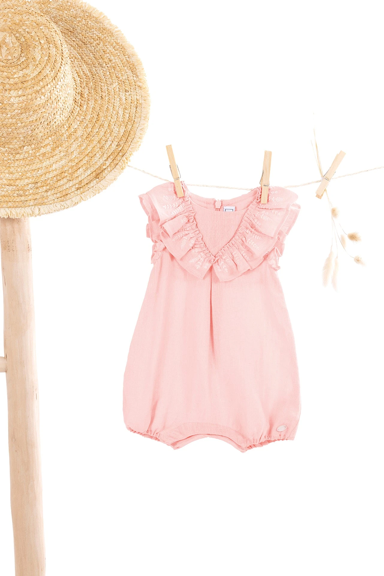 Douce et colorée, cette belle combinaison courte rose en 100% lin est spécialement conçue pour le plus grand confort des petites filles grâce à sa matière douce et son ouverture par boutons pression à l’entrejambe. On craque pour ce modèle très élégant avec ses jolies broderies champ de blé et ses volants au niveau du col et du buste. Parfaite pour le quotidien, on aime l’associer avec un cardigan de la même collection pour plus d’élégance.