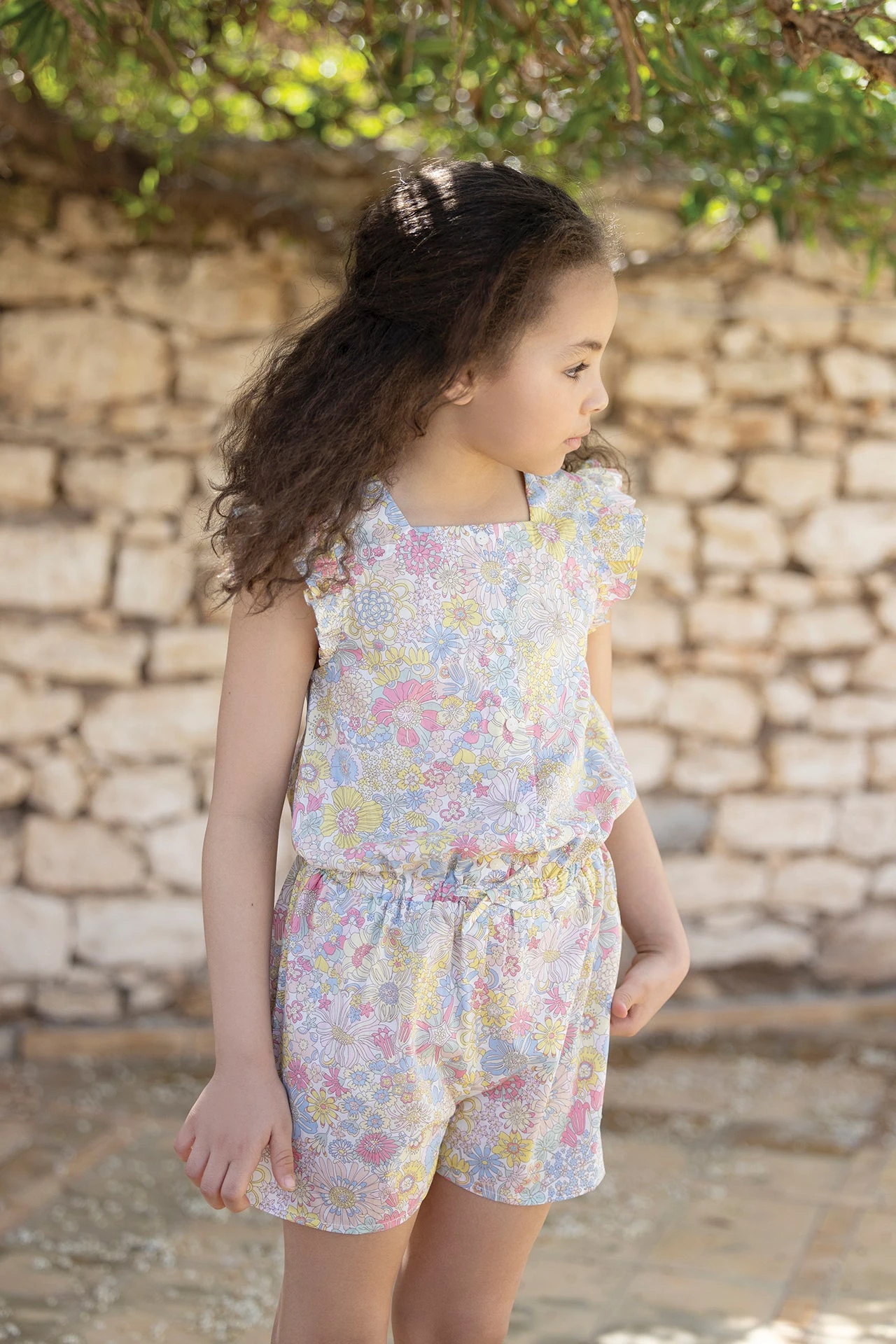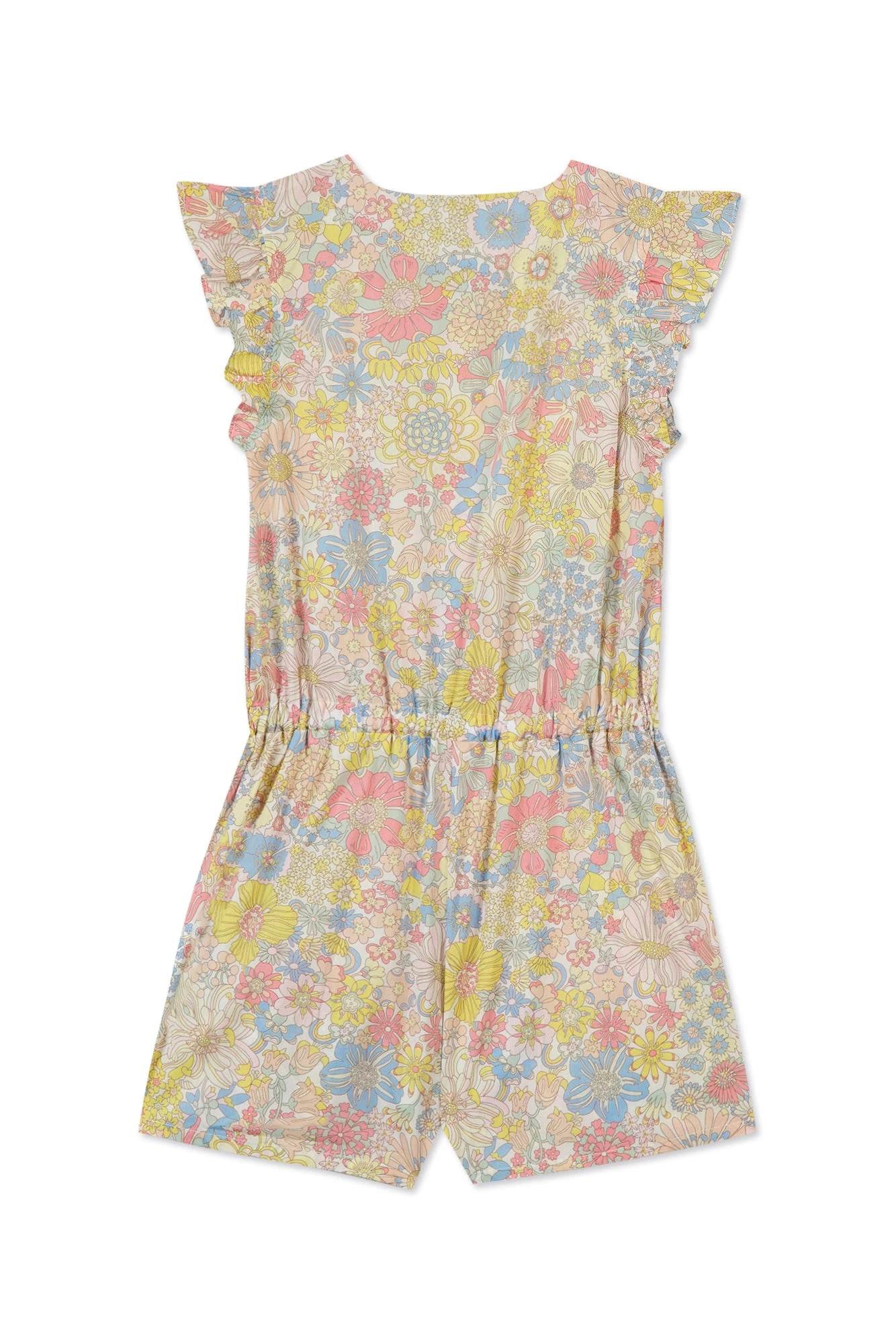Synonyme de légèreté et de raffinement, cette adorable combinaison courte rose pâle tissu liberty en coton habille les petites filles avec fraîcheur et modernité. On craque pour son joli col, ses détails volantés au niveau des emmanchures et sa taille marquée qui vient sublimer la tenue.