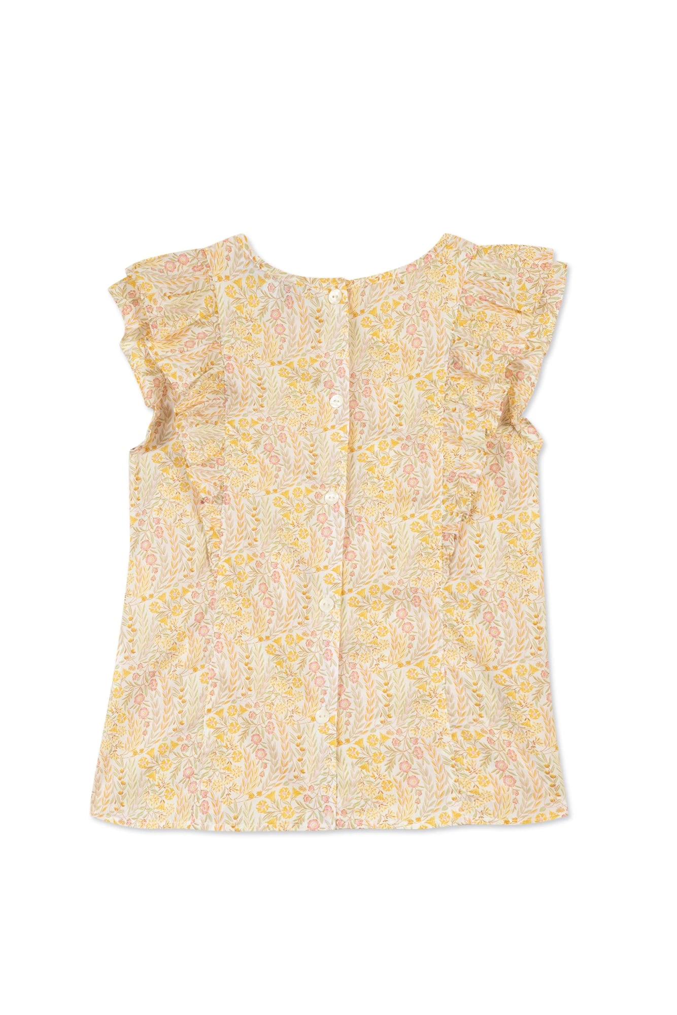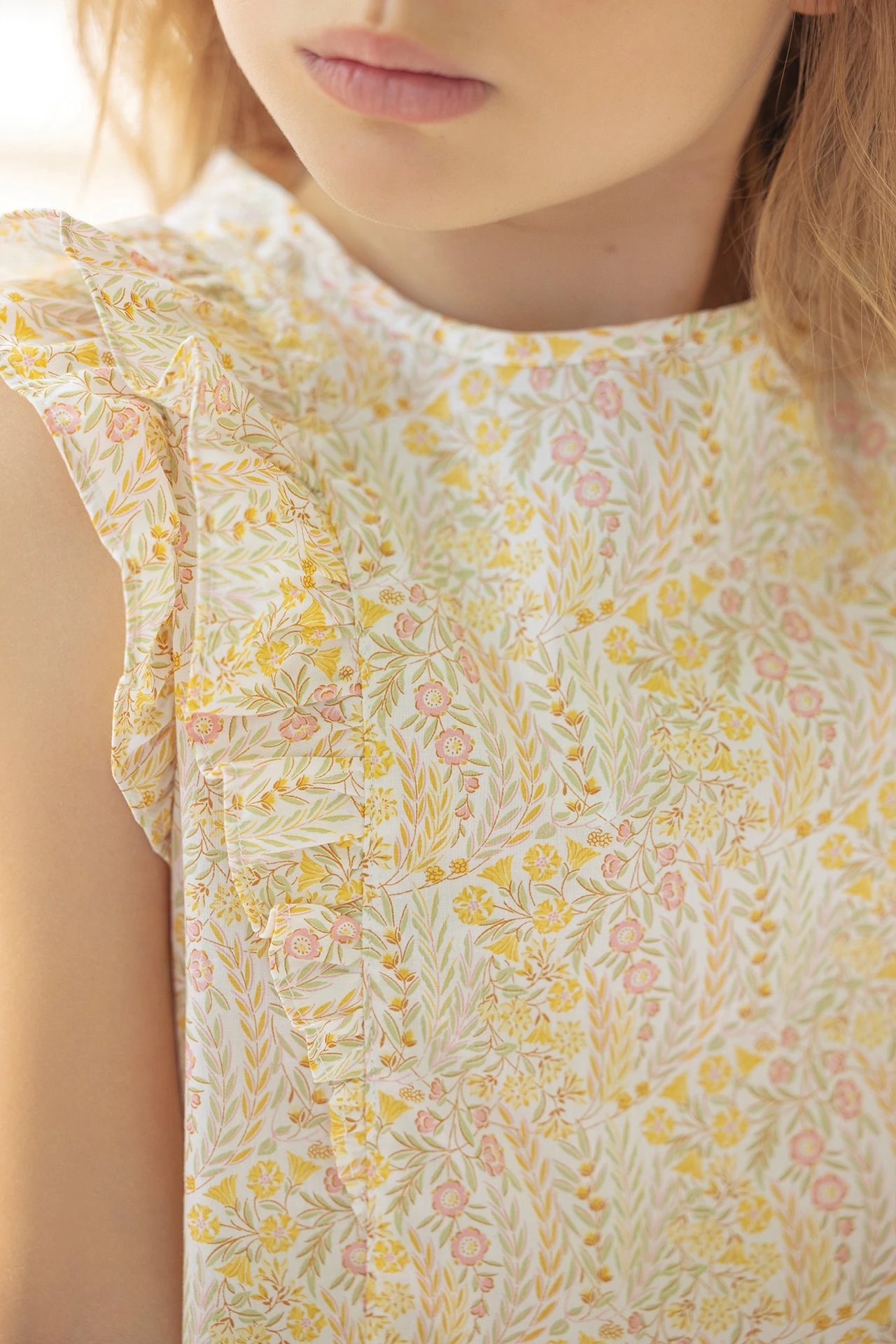 Synonyme de légèreté et de raffinement, cet adorable ensemble court jaune tissu liberty en coton habille les petites filles avec fraîcheur et modernité. On craque pour son joli col rond, ses détails volantés et la coupe sophistiquée du haut qui vient sublimer la tenue.