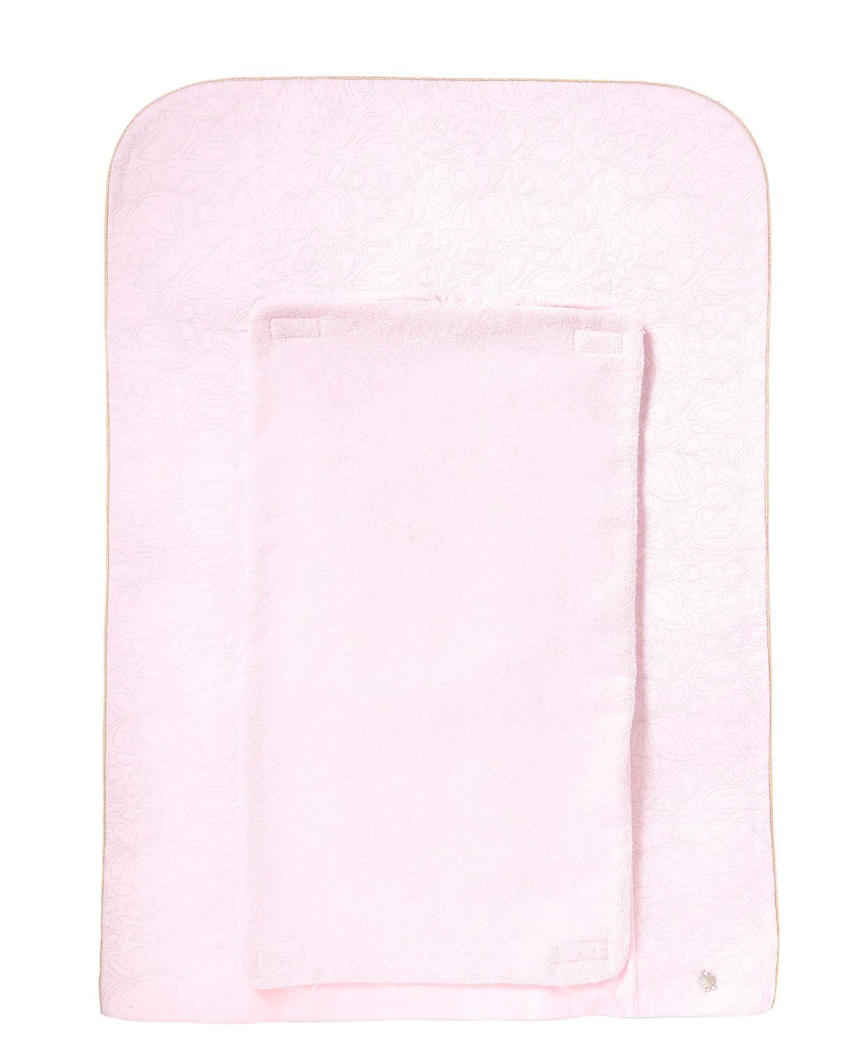 Housse de matelas à langer Délicatesse rose pâle, en percale de coton émerisée et éponge. Dimensions : 55 x 75 cm. A associer à notre matelas à langer T179001 et le protège matelas T279101. La ligne Délicatesse : Le raffinement et l’élégance de cette ligne illuminent l’univers féérique de la petite fille. Plastron en percale brodée, fils d’or et signature nacrée réhaussent avec modernité les lignes épurées de cette collection. Fabriqué au Portugal