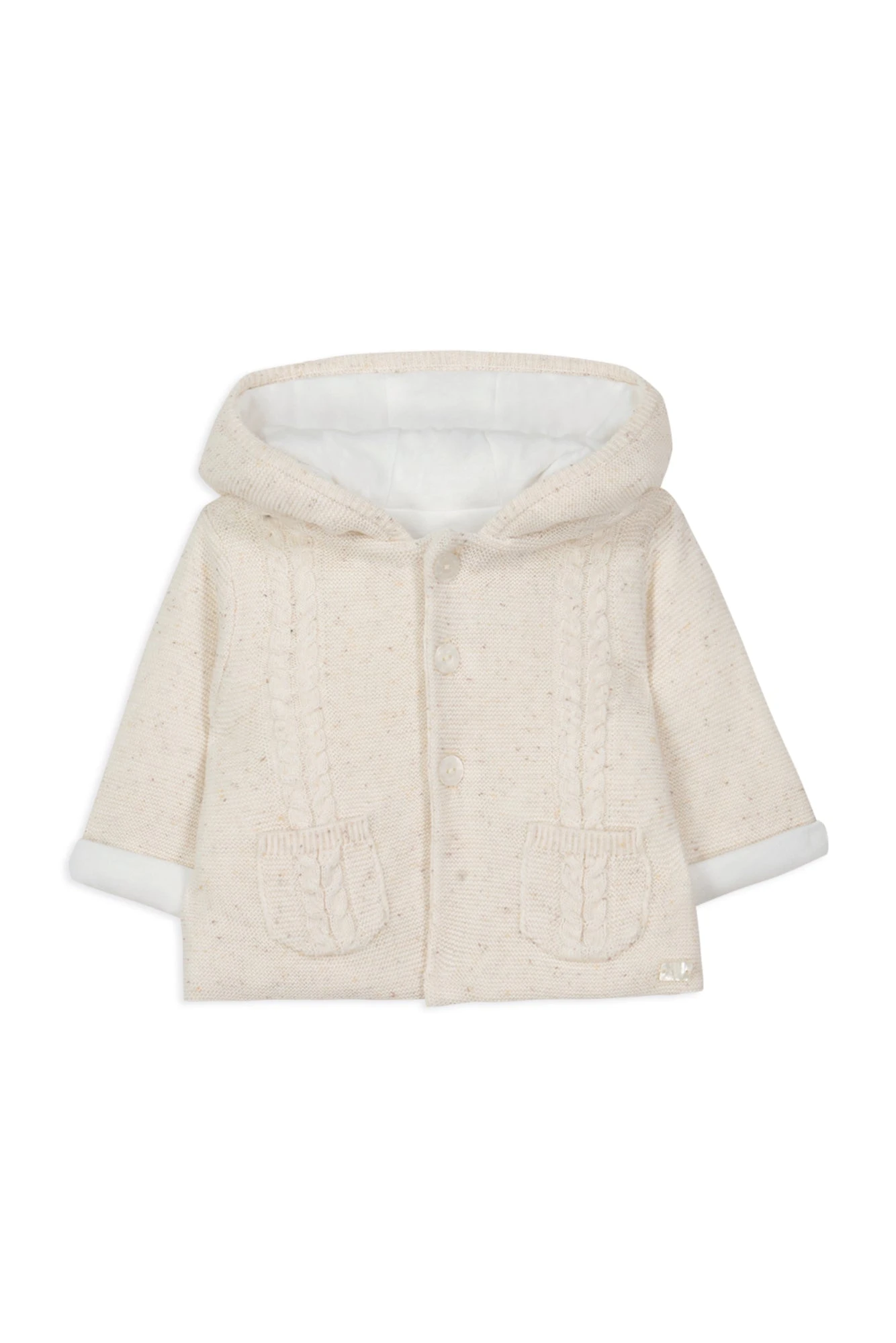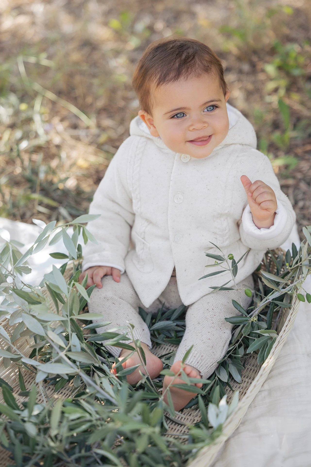 Cet adorable manteau écru en maille sera l’allié de bébé au cas où les températures venaient à se rafraîchir. Ses délicats détails en maille tressée aux extrémités ainsi que ses motifs mouchetés rendent la pièce unique. Sa capuche et son ouverture à boutons le rendent encore plus pratique. C’est la pièce parfaite qui complétera à merveille n’importe quelle tenue. On se plaît à l’associer à une jolie combinaison ou à un ensemble élégant.