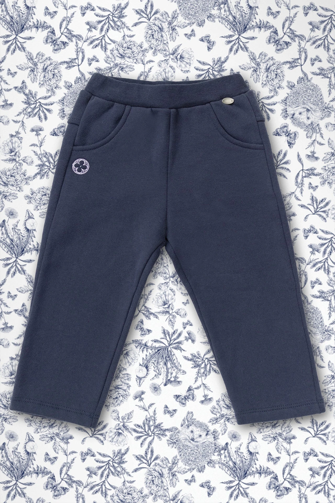 Décontracté et élégant, ce pantalon en molleton marine ravira les petits comme les grands.