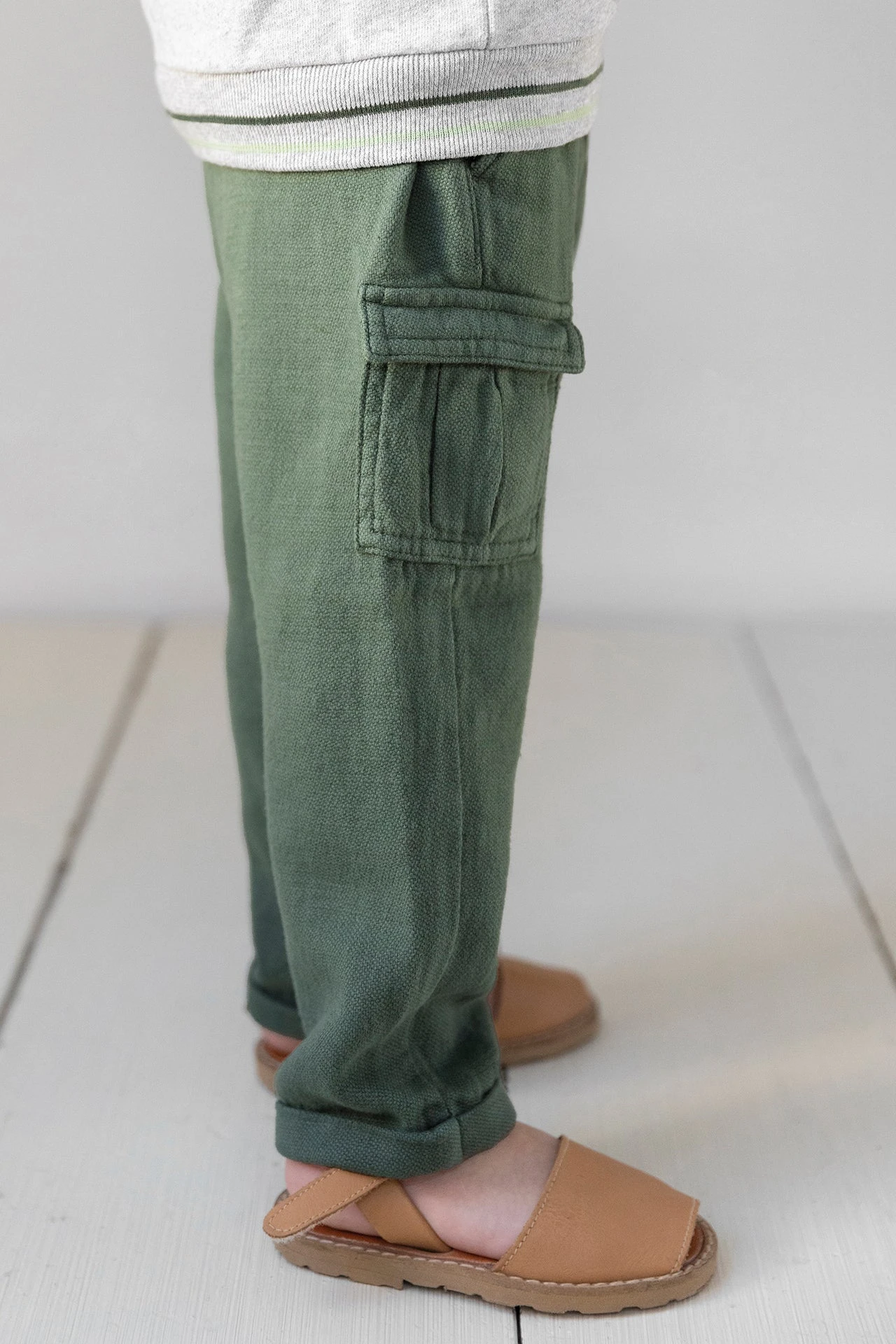 Cet adorable pantalon vert cargo en coton nattĂ© souple et en lin sera parfait pour habiller bĂ©bĂ© en cette saison. SpĂ©cialement conçu pour le confort des touts petits, ce pantalon est très agrĂ©able Ă porter grâce Ă ses diffĂ©rentes poches mais aussi facile Ă enfiler aux bĂ©bĂ©s notamment grâce Ă sa taille Ă©lastique. On aime l’associer Ă un joli polo de la mĂŞme collection pour un total look.