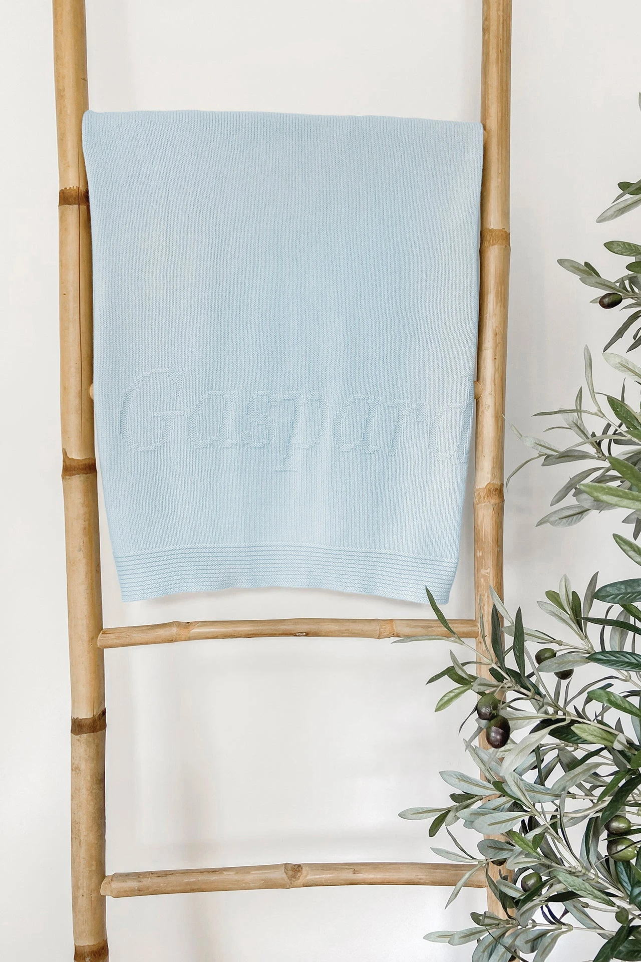 Le plaid en cachemire bleu ciel, personnalisé au nom de Gaspard, est prêt à être expédié dès maintenant pour vous offrir confort et style. Dimension : 100 x 75 cm. Chaque plaid sera soigneusement emballé dans du papier de soie parfumé au Ptisenbon et inséré dans une boite cadeau fermée par un ruban. Fabriqué au Portugal. T20012F