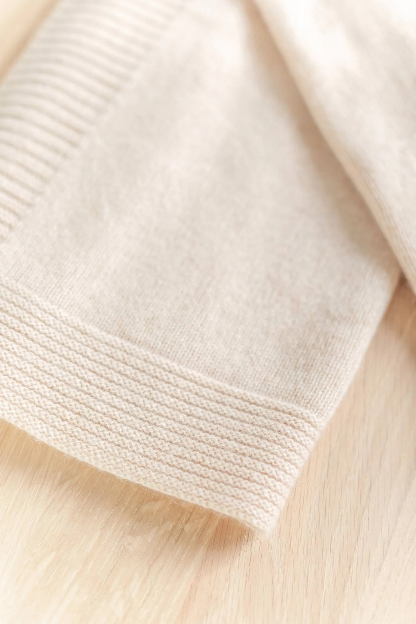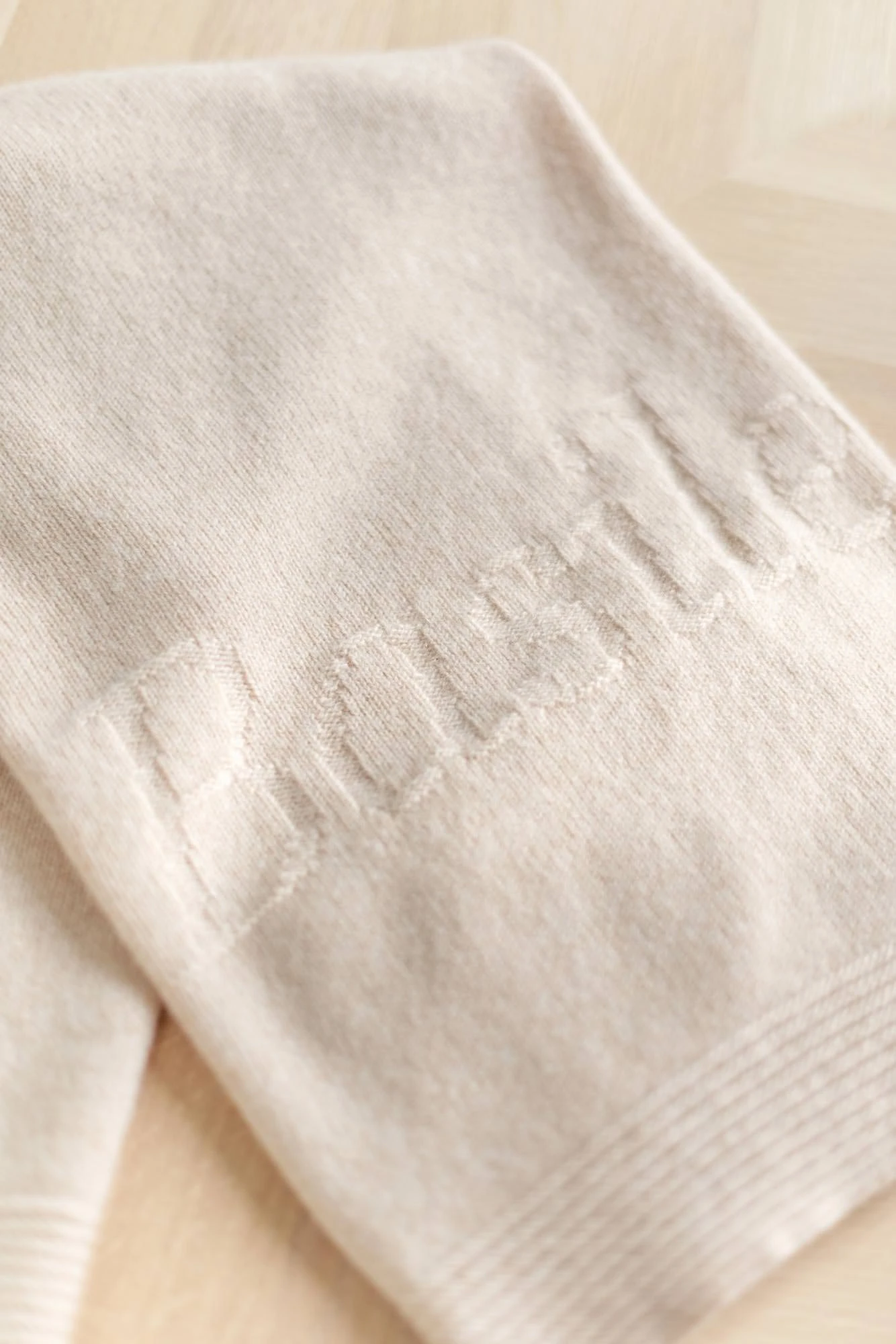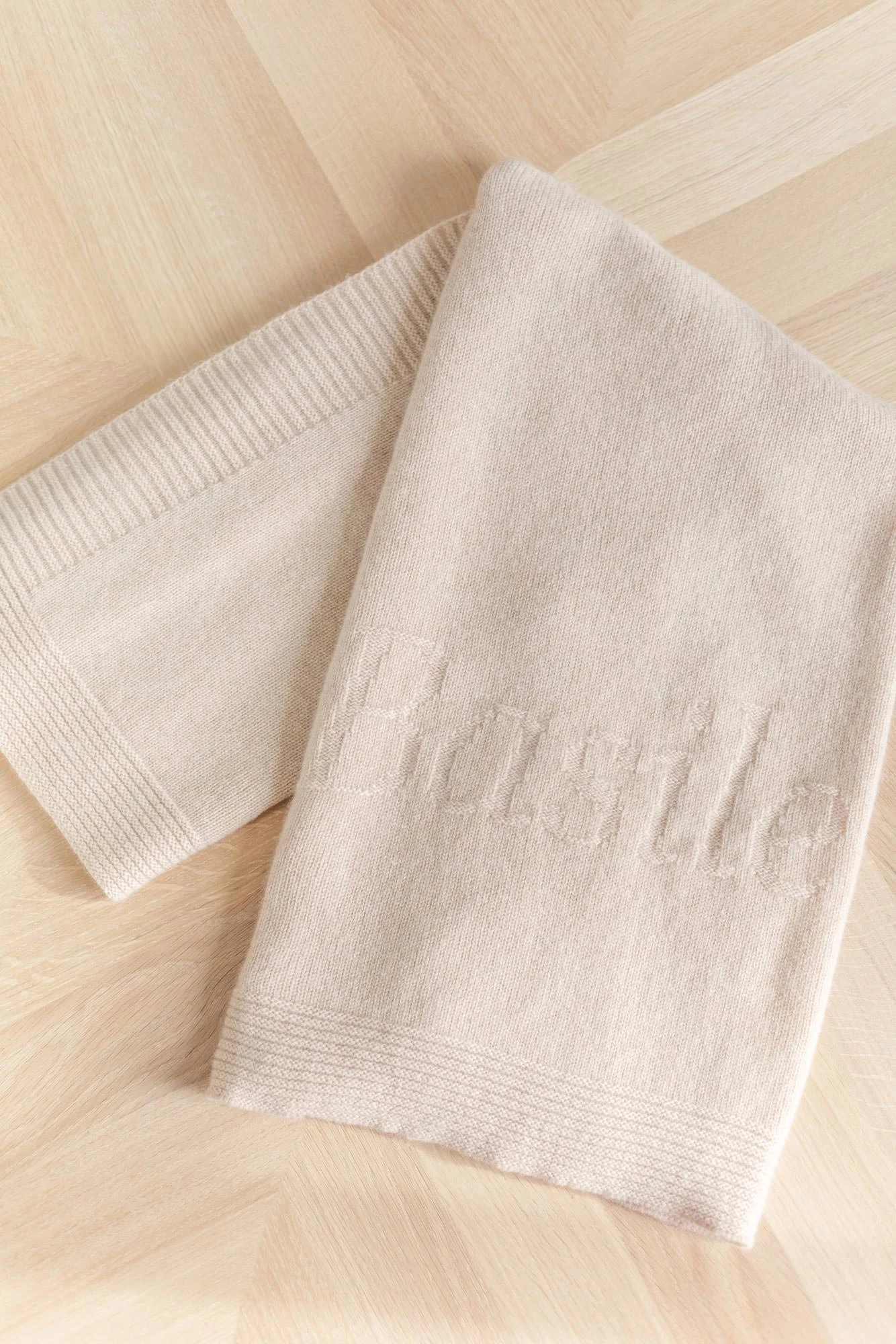 Ce plaid personnalisé en cachemire est à personnaliser au prénom ou aux initiales de l’enfant pour un cadeau unique qui accompagnera bébé pendant ses premières années. Le prénom est tricoté directement dans le plaid et est fabriqué à la commande dans un atelier du Portugal. Dimensions : 100 x 75 cm. La personnalisation: 10 caractères maximum – Police Georgia – tous les accents, majuscules, minuscules sont possibles. Chaque plaid sera soigneusement emballé dans du papier de soie parfumé au Ptisenbon et inséré dans une boite cadeau fermée par un ruban.