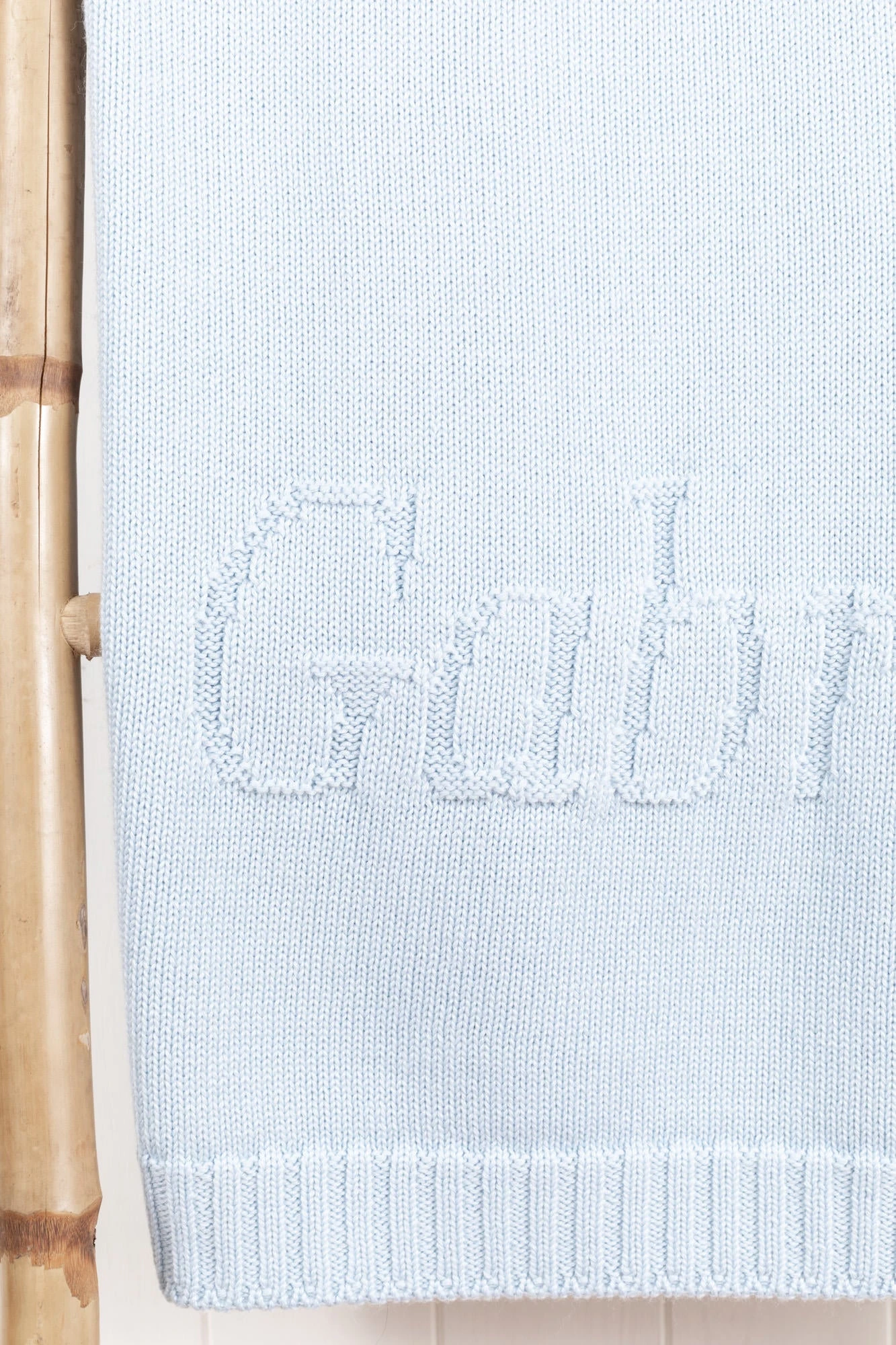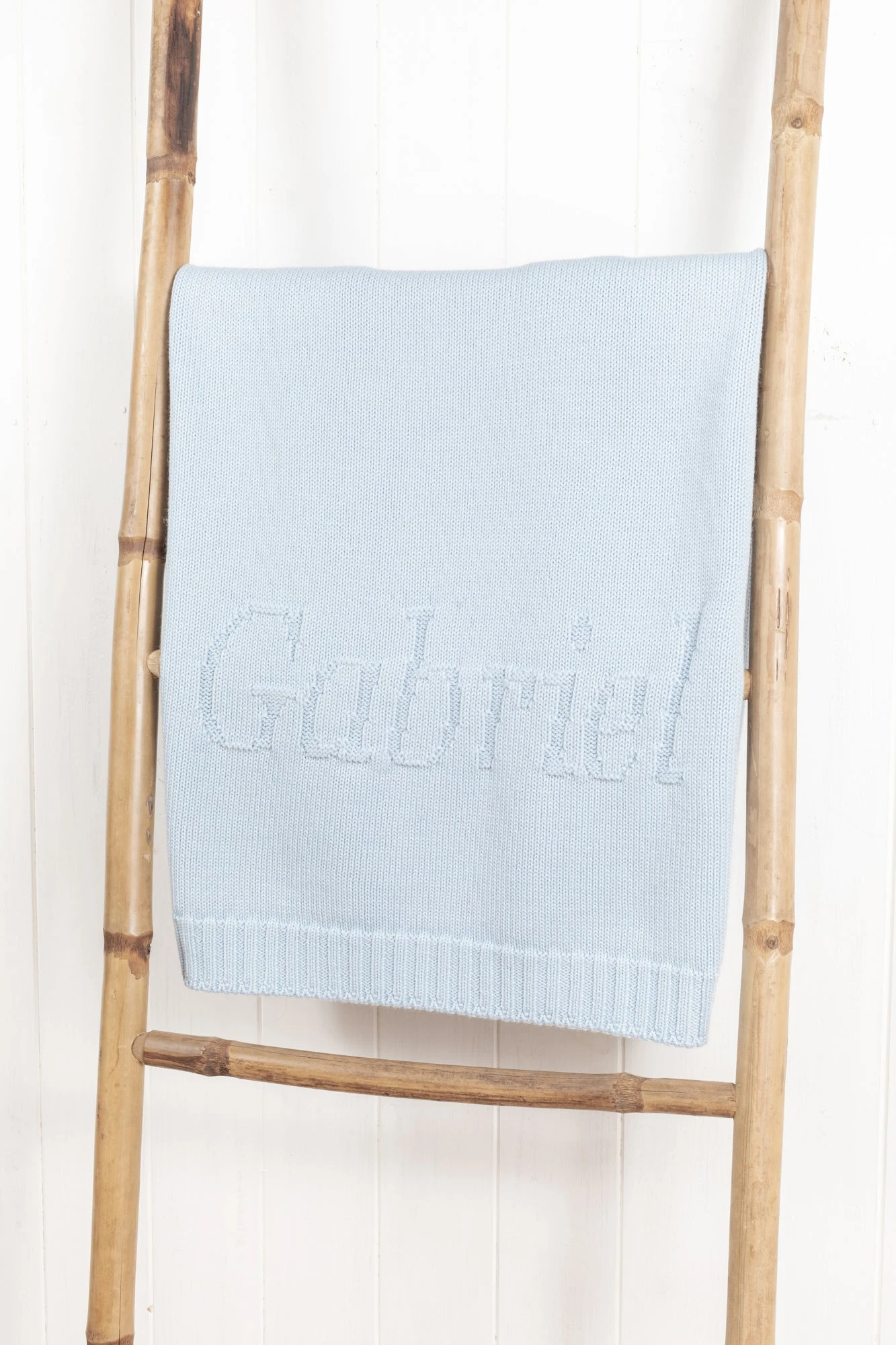 Ce plaid personnalisé en laine est à personnaliser au prénom ou aux initiales de l’enfant pour un cadeau unique qui accompagnera bébé pendant ses premières années. Le prénom est tricoté directement dans le plaid et est fabriqué à la commande dans un atelier du Portugal. Dimensions : 100 x 75 cm. La personnalisation: 10 caractères maximum – Police Georgia – tous les accents, majuscules, minuscules sont possibles. Chaque plaid sera soigneusement emballé dans du papier de soie parfumé au Ptisenbon et inséré dans une boite cadeau fermée par un ruban.