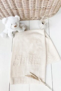 Le plaid en laine beige, personnalisé au nom de Stella, est prêt à être expédié dès maintenant pour vous offrir confort et style. Dimension : 100 x 75 cm. Chaque plaid sera soigneusement emballé dans du papier de soie parfumé au Ptisenbon et inséré dans une boite cadeau fermée par un ruban. Fabriqué au Portugal. T20011F