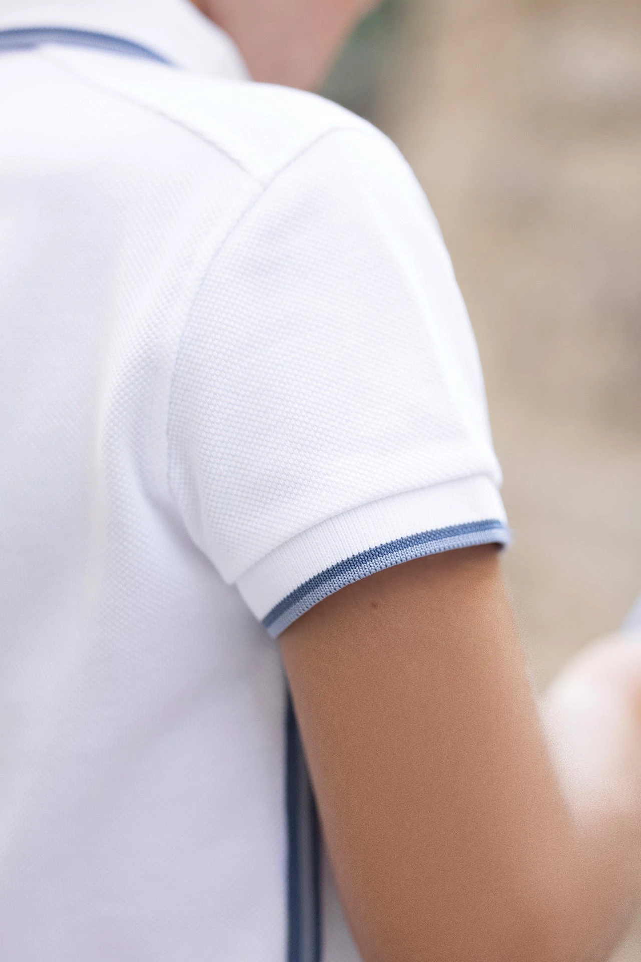 Indispensable de la garde robe des petits garçons, ce joli polo en maille piquée est idéal pour la saison. Sa matière en 100% Coton lui apporte légèreté et confort pour les doux instants quotidien. Elégant grâce à son adorable liseré contrastant, ce polo s’associe parfaitement avec un pantalon ou un short de notre collection.