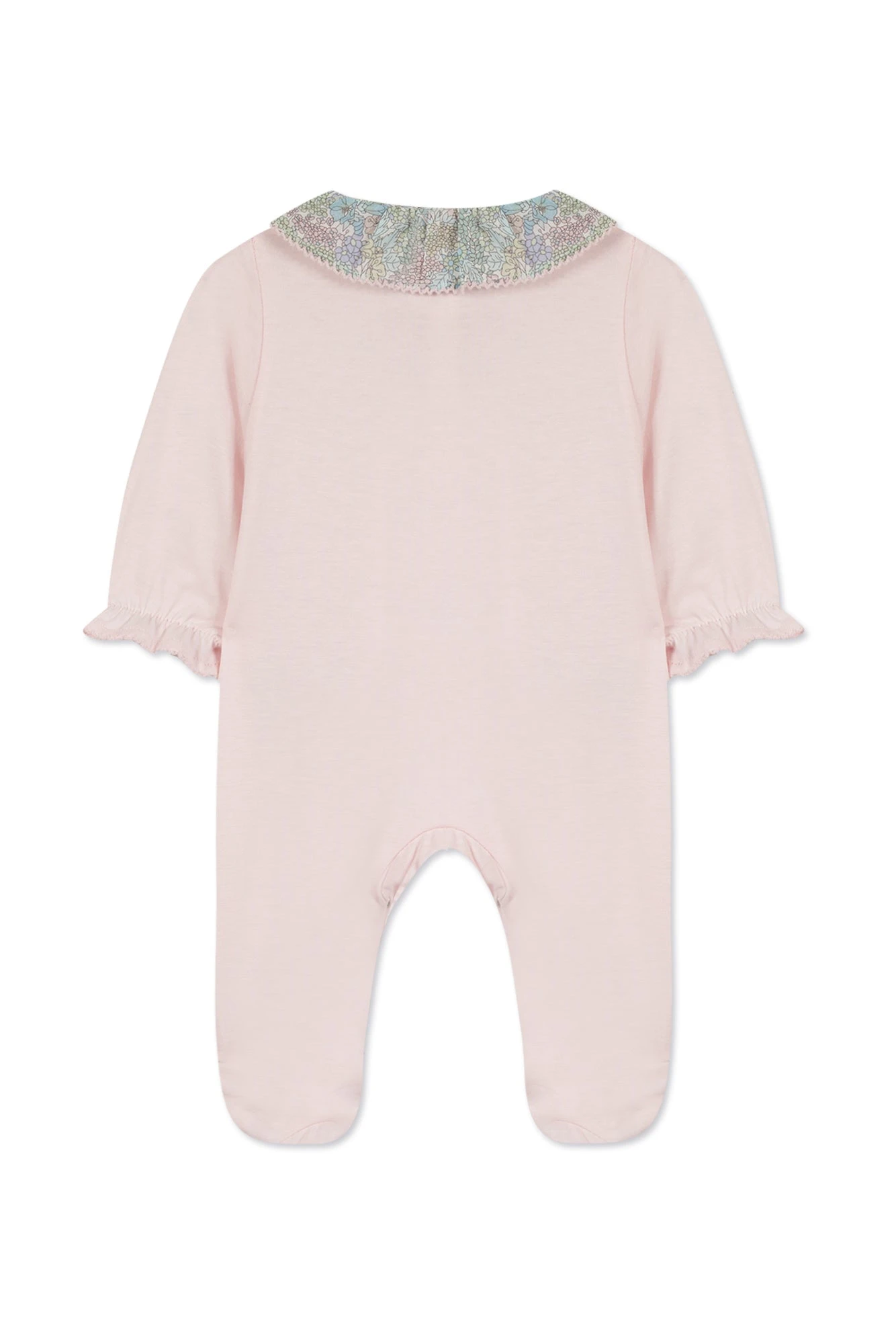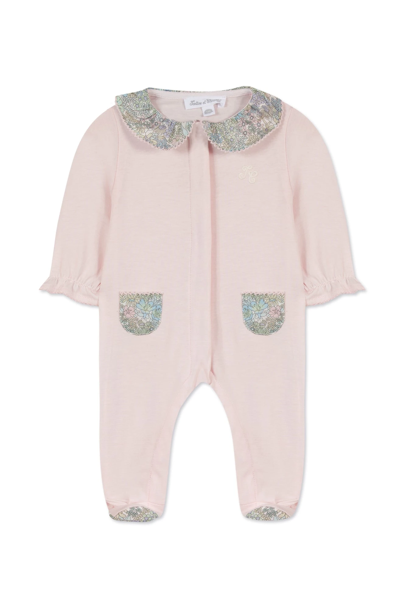 On craque sur cet adorable pyjama rose pâle qui sera parfait pour la tenue de bébé en cette saison. Ses détails en tissu liberty au niveau du col, des poches et des pieds ainsi que son monogramme TC apportent une touche supplémentaire d’élégance à cette pièce. Réalisée en 100% coton, bébé sera blottie dans une bulle de douceur tout au long de la journée et de la nuit. On se plaît à l’associer à un joli body de la même collection pour un total look.