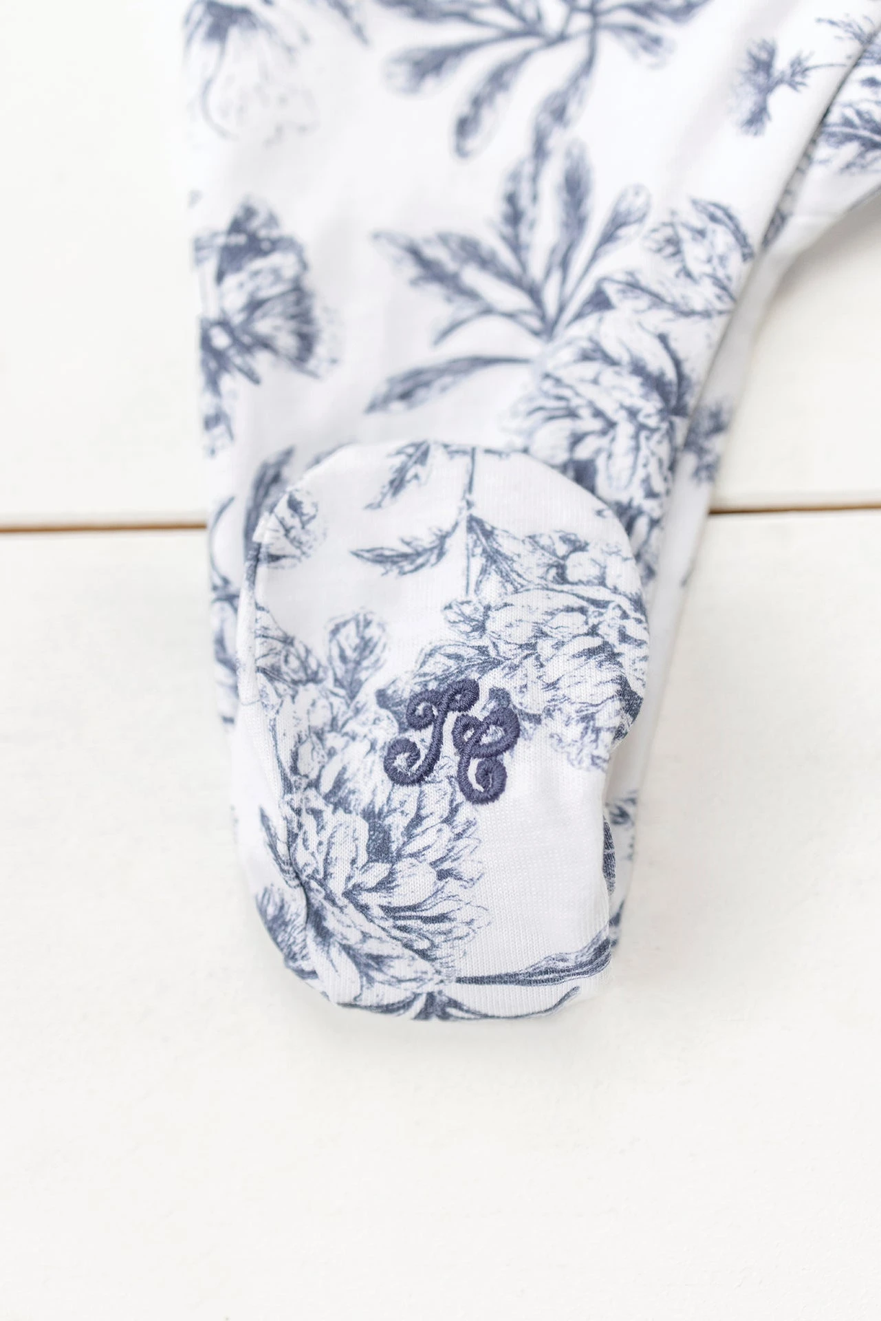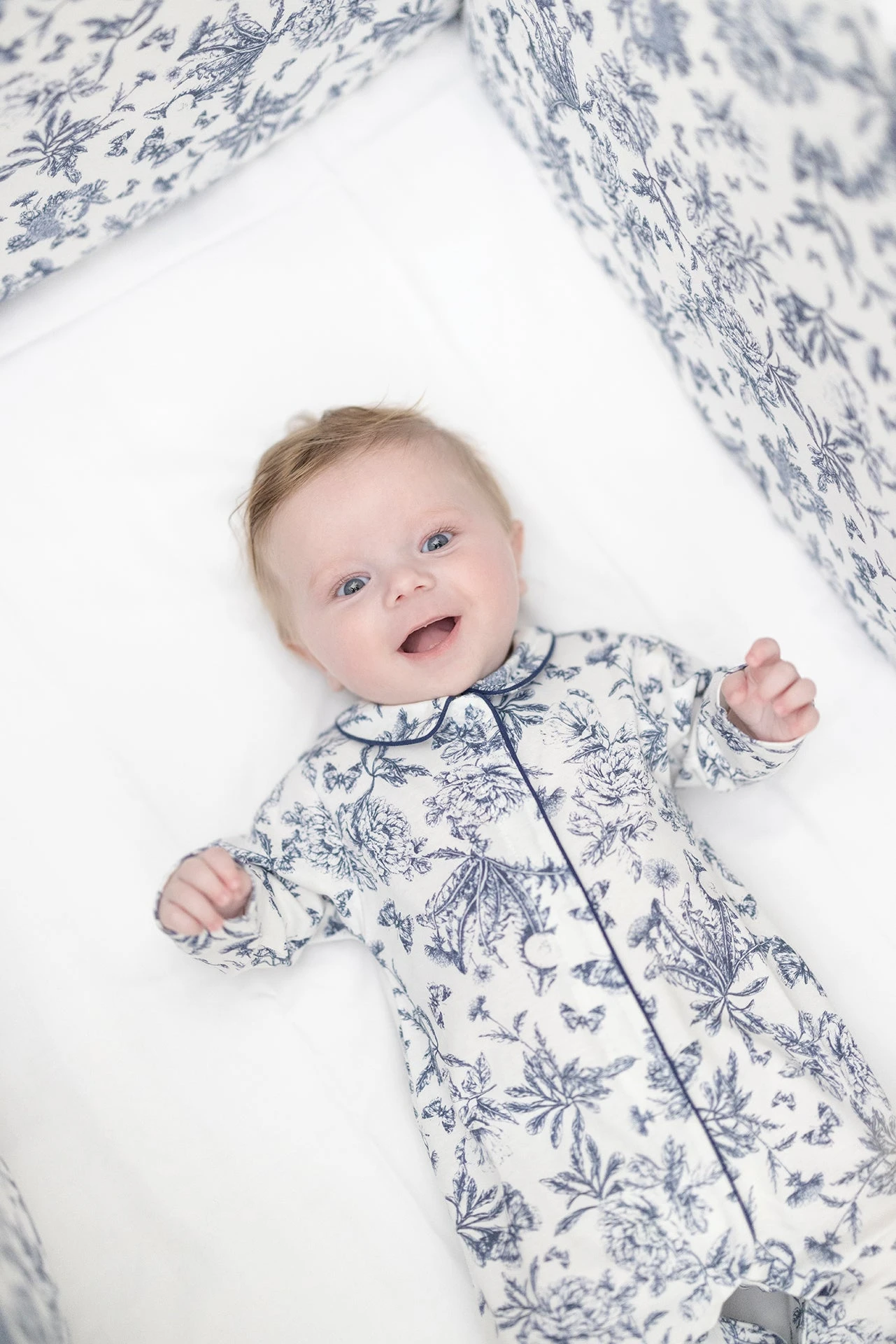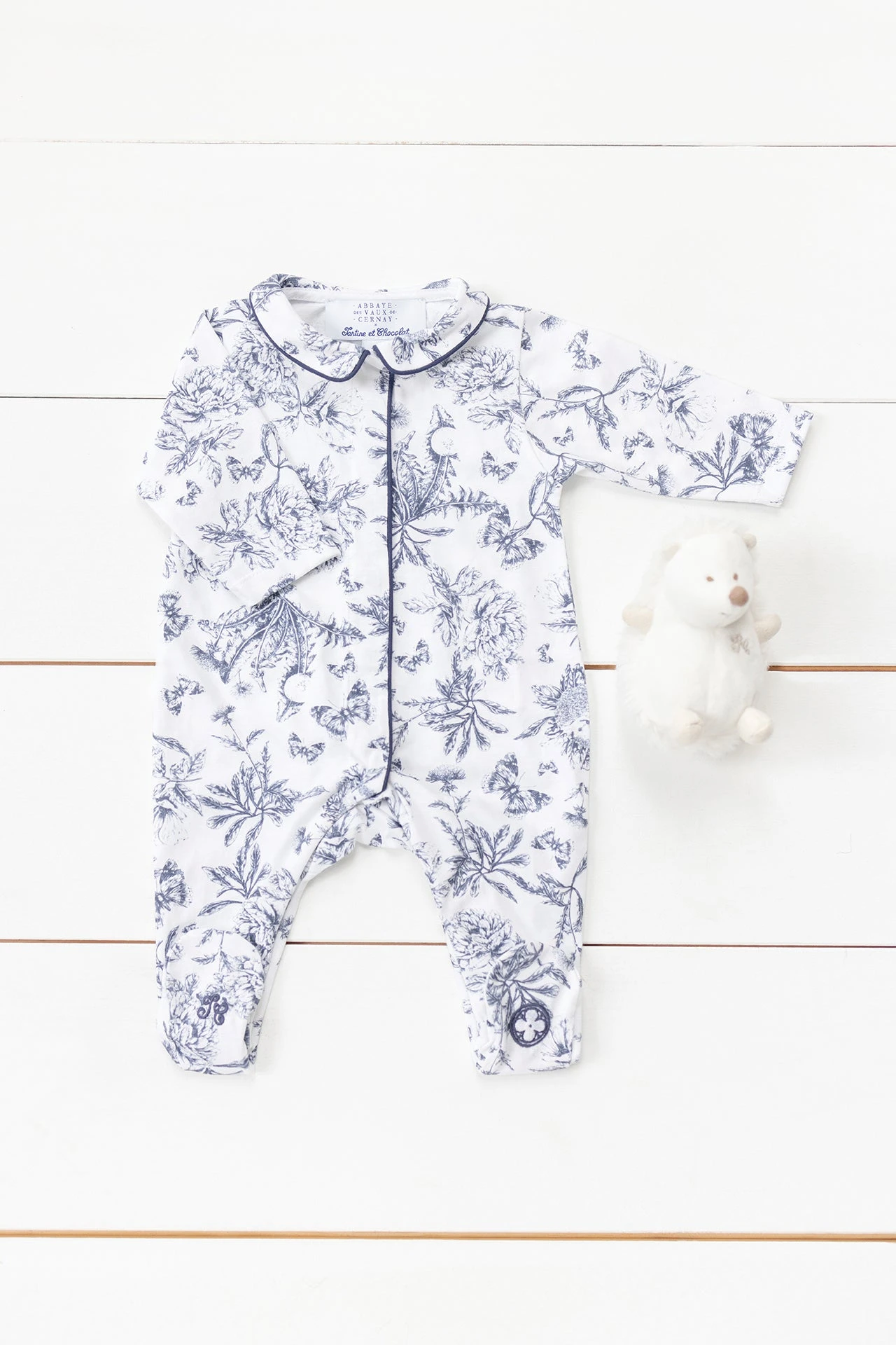 Pyjama en coton pour accompagner les nuits de bébé. On craque pour sa matière douce et son imprimé d’inspiration Toile de Jouy. En signature, l’emblème de l’Abbaye des Vaux-de-Cernay et TC sous les pieds.