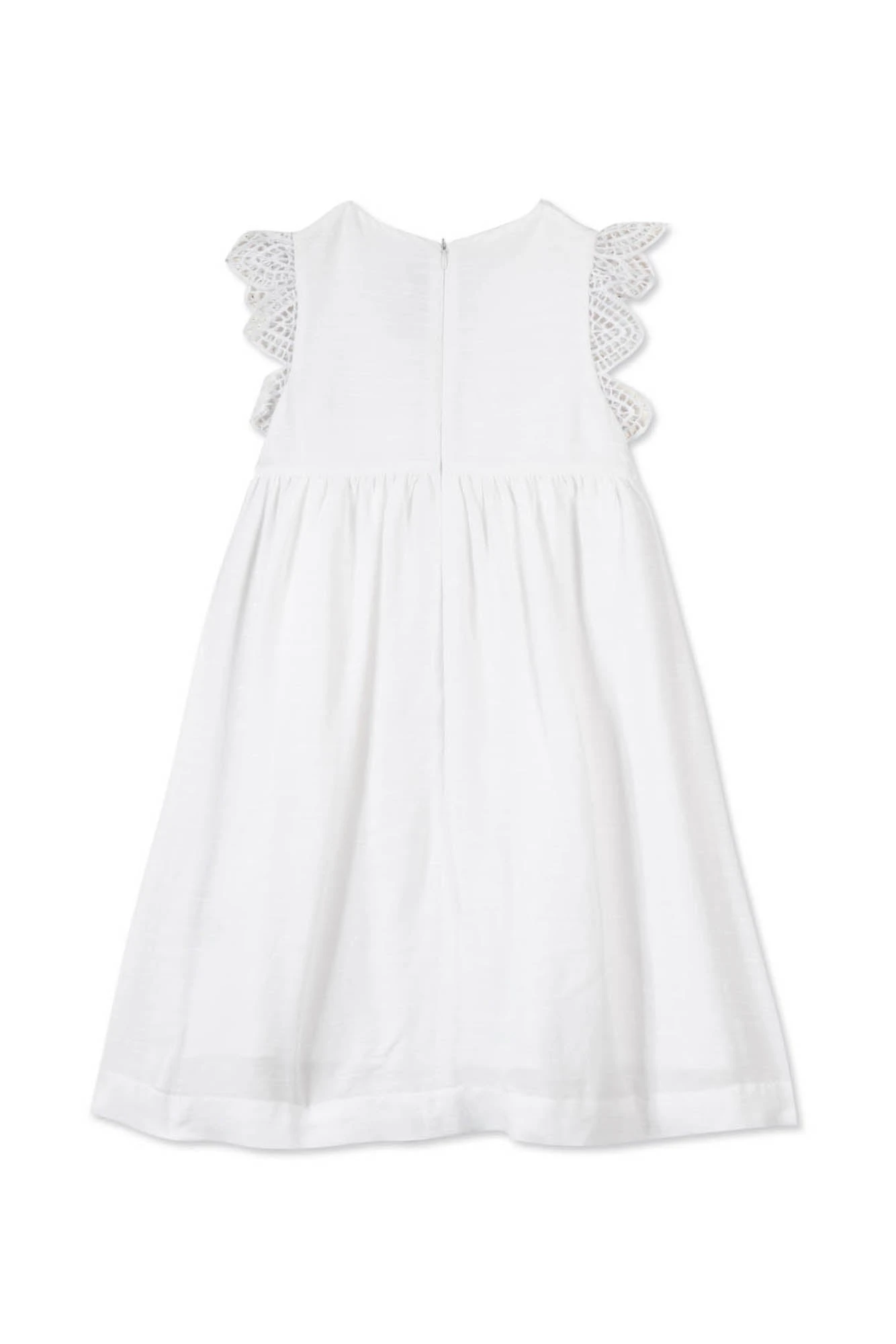 Délicate et légère, cette robe blanche aux broderies au niveau du col et des emmanchures est un véritable vent de fraicheur pour cet été. On craque sur sa coupe évasée qui apporte une touche supplémentaire de raffinement. Avec sa matière en coton, votre petite fille sera confortable et à l’aise pour tous les moments de sa journée. Idéale pour le quotidien : les sorties au bord de la plage, les soirées de l’été et les rendez-vous entre copines. On aime la porter avec un cardigan de la même collection pour un total look.