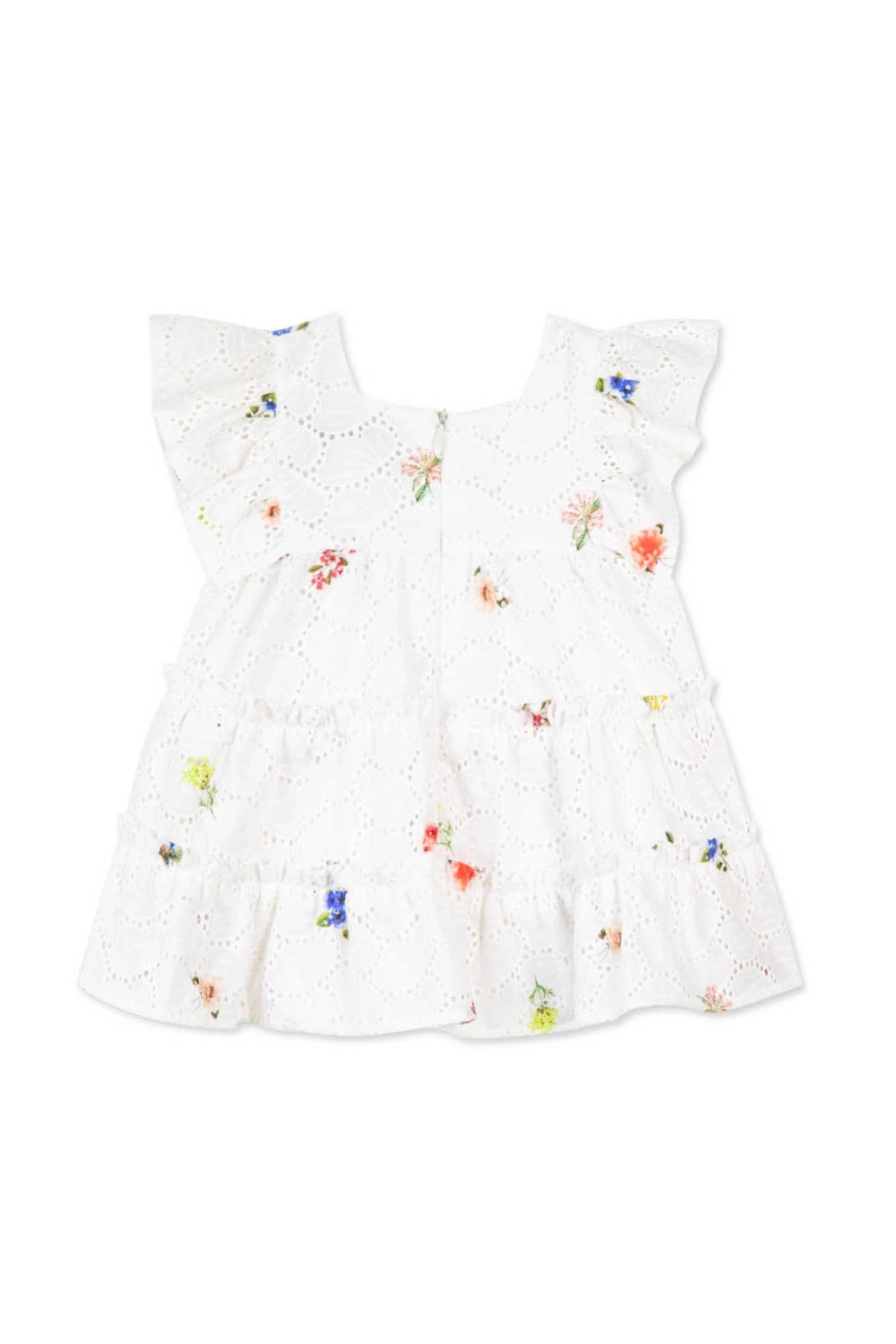 Délicate et légère, cette robe blanche entièrement printée est un véritable vent de fraicheur pour cet été. Avec sa matière en 100% Coton, votre petite fille sera confortable et à l’aise pour tous les moments de sa journée. Les broderies anglaises au niveau des emmanchures confèrent une touche originale à cette belle robe. Pour faciliter les changements de tenue, cette robe dispose d’une ouverture zippée au dos. Idéale pour le quotidien : les sorties au bord de la plage, les soirées de l’été et les rendez-vous entre copines. On aime la porter avec un cardigan de la même collection pour un total look.