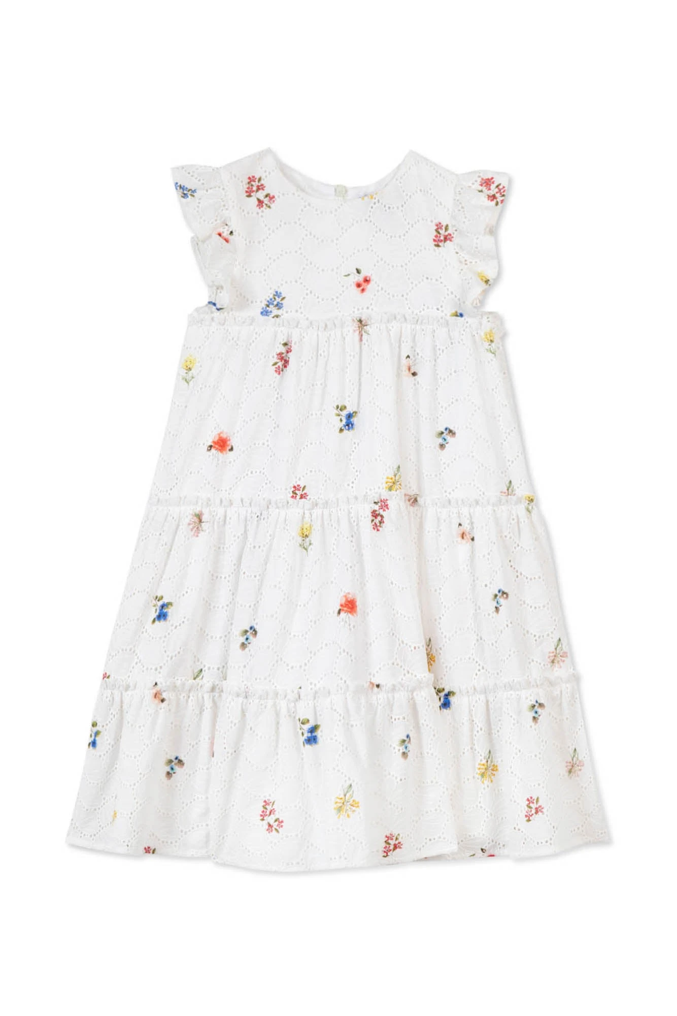 Délicate et légère, cette robe blanche aux broderies fleuries all over est un véritable vent de fraicheur pour cet été. On craque sur ses volants au niveau des emmanchures et sa coupe évasée qui apportent une touche supplémentaire de raffinement. Avec sa matière en 100% coton, votre petite fille sera confortable et à l’aise pour tous les moments de sa journée. Idéale pour le quotidien : les sorties au bord de la plage, les soirées de l’été et les rendez-vous entre copines. On aime la porter avec un cardigan de la même collection pour un total look.