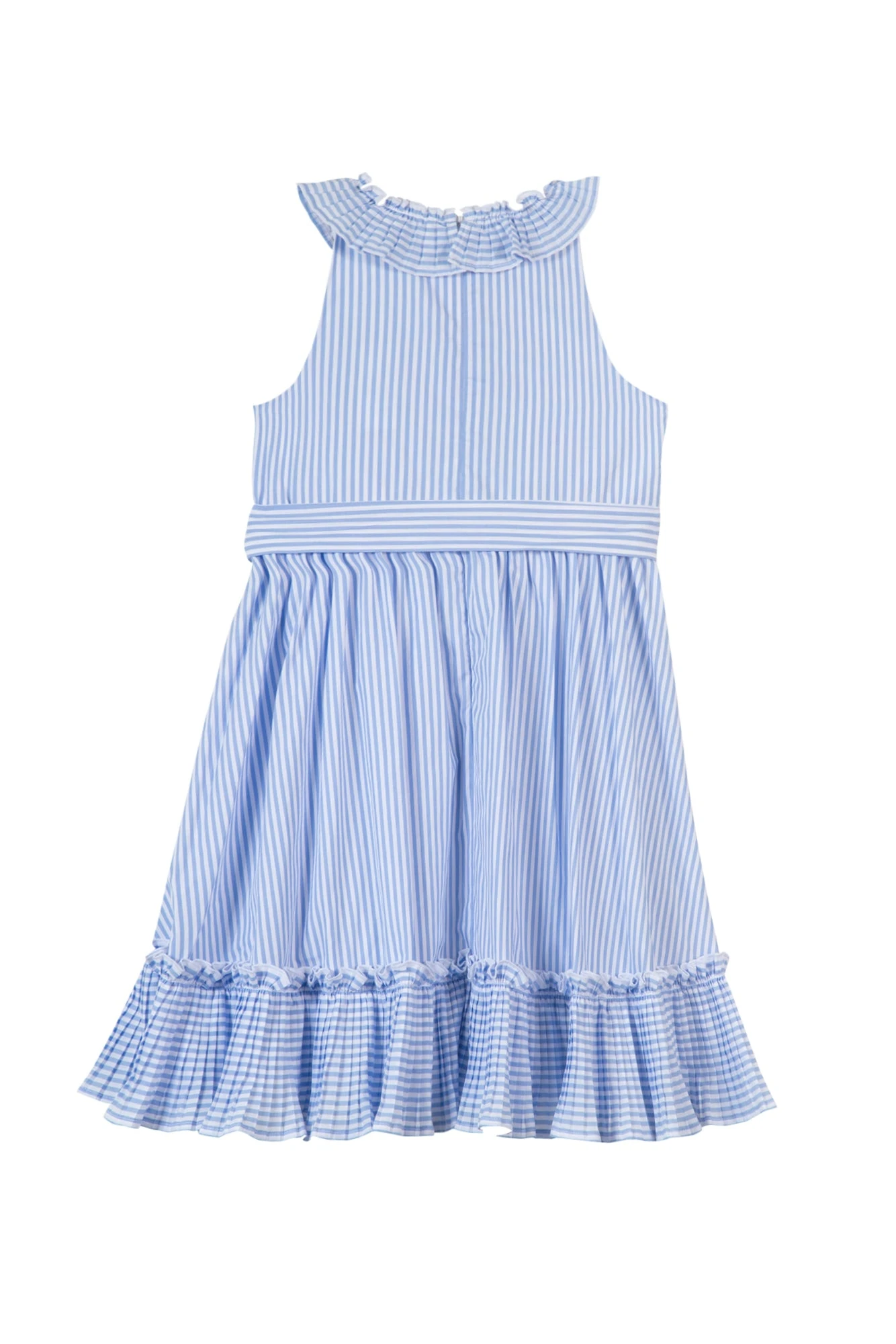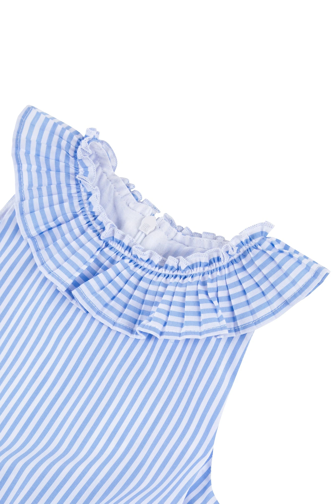 Délicate et légère, cette robe couleur bleue est un véritable vent de fraicheur pour cet été. On craque sur ses adorables rayures dans les mêmes tons, ses jolis volants et sa jolie ceinture qui apportent une touche supplémentaire de raffinement. Avec sa matière en 100% coton, votre petite fille sera confortable et à l’aise pour tous les moments de sa journée. Idéale pour le quotidien : les sorties au bord de la plage, les soirées de l’été et les rendez-vous entre copines. On aime la porter avec un cardigan de la même collection pour un total look.
