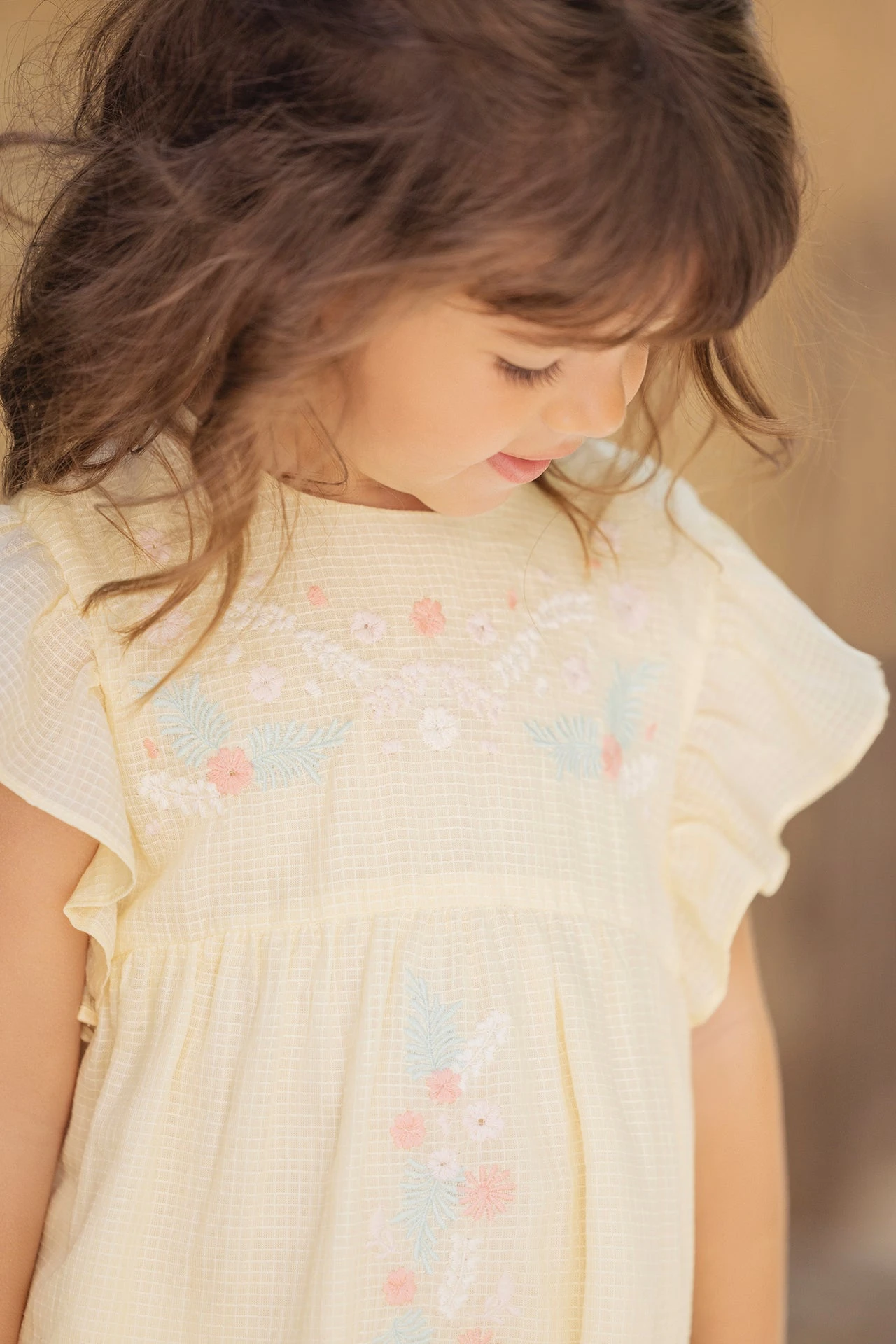 Délicate et légère, cette robe jaune en voile de coton travaillée en fil à fil est un véritable vent de fraicheur pour cet été. Avec sa matière en 100% Coton, votre petite fille sera confortable et à l’aise pour tous les moments de sa journée. Les broderies forales sur l’avant de la robe confèrent une touche originale à cette belle robe. Pour faciliter les changements de tenue, cette robe dispose d’une ouverture zippée au dos. Idéale pour le quotidien : les sorties au bord de la plage, les soirées de l’été et les rendez-vous entre copines. On aime la porter avec un cardigan de la même collection pour un total look.