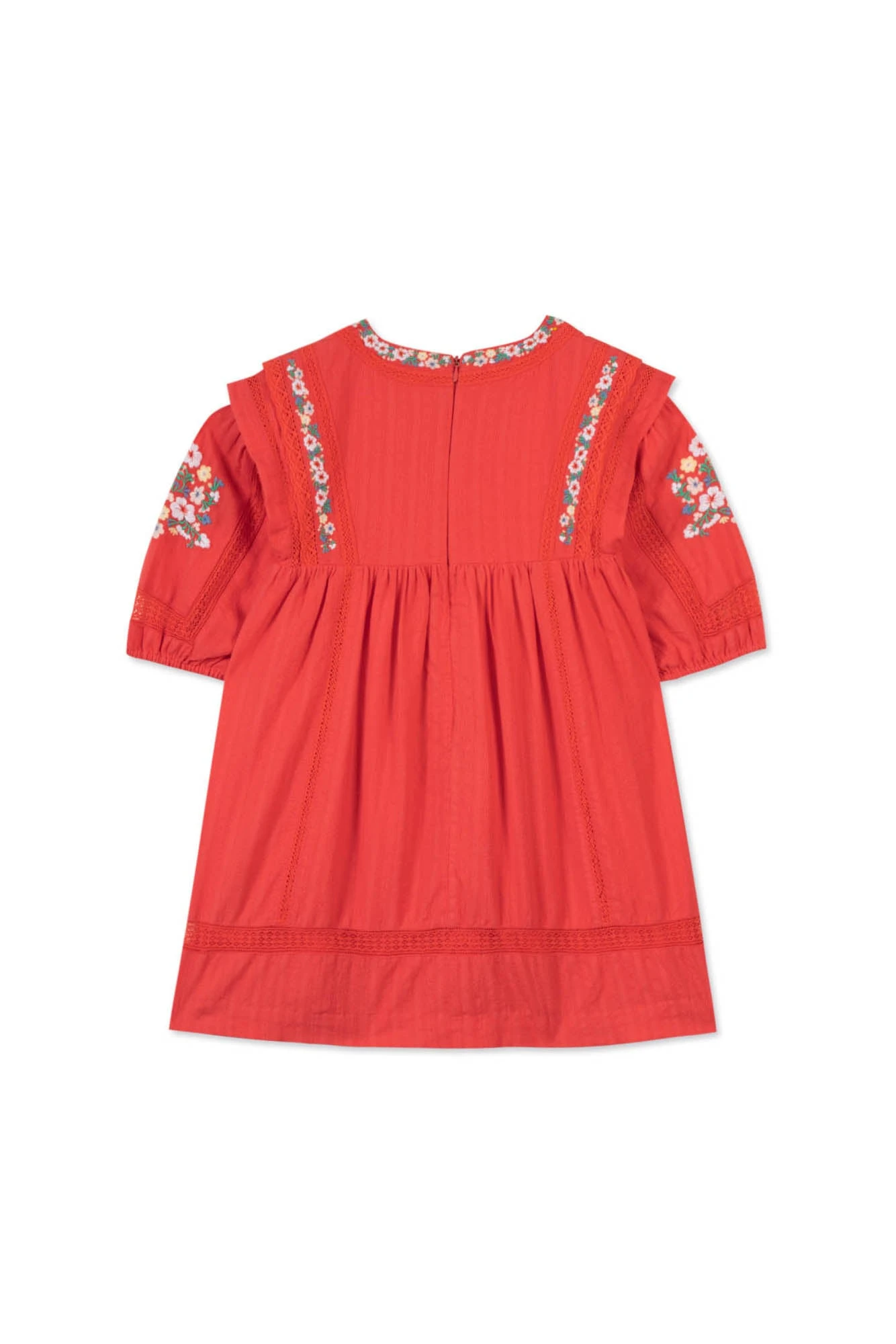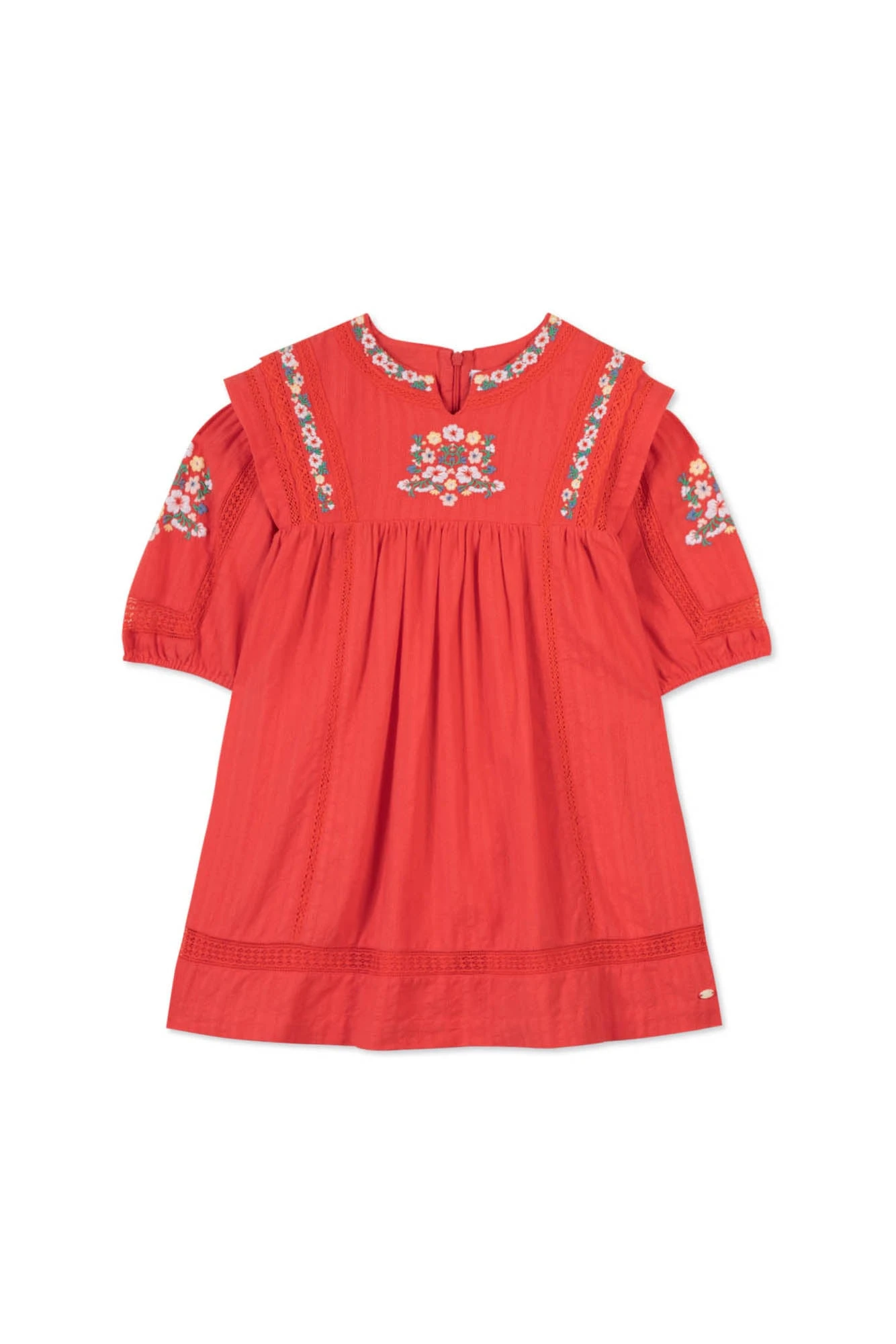 Délicate et légère, cette robe rouge aux broderies fleuries colorées est un véritable vent de fraicheur pour cet été. On craque sur ses manches bouffantes et sa coupe évasée qui apportent une touche supplémentaire de raffinement. Avec sa matière en 100% coton, votre petite fille sera confortable et à l’aise pour tous les moments de sa journée. Idéale pour le quotidien : les sorties au bord de la plage, les soirées de l’été et les rendez-vous entre copines. On aime la porter avec un cardigan de la même collection pour un total look.