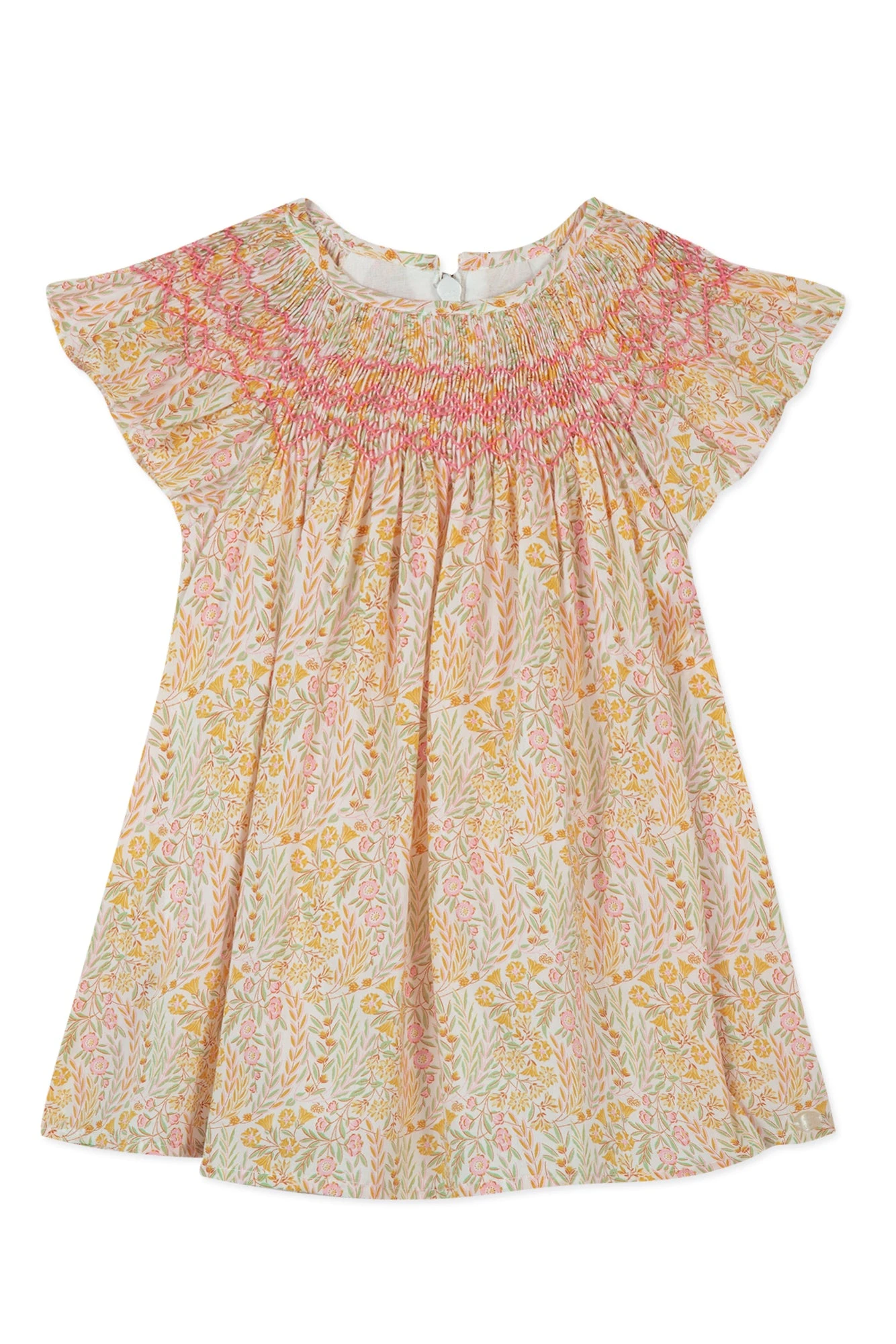 Délicate et légère, cette robe en tissu Liberty rose est un véritable vent de fraicheur pour cet été. Avec sa matière en 100% Coton, votre petite fille sera confortable et à l’aise pour tous les moments de sa journée. Les volants à l’emmanchure et ses smocks cousues à la main sur le devant confèrent une touche originale à cette belle robe. Pour faciliter les changements de tenue, cette robe dispose d’une ouverture zippée au dos. Idéale pour le quotidien : les sorties au bord de la plage, les soirées de l’été et les rendez-vous entre copines. On aime la porter avec un cardigan de la même collection pour un total look.