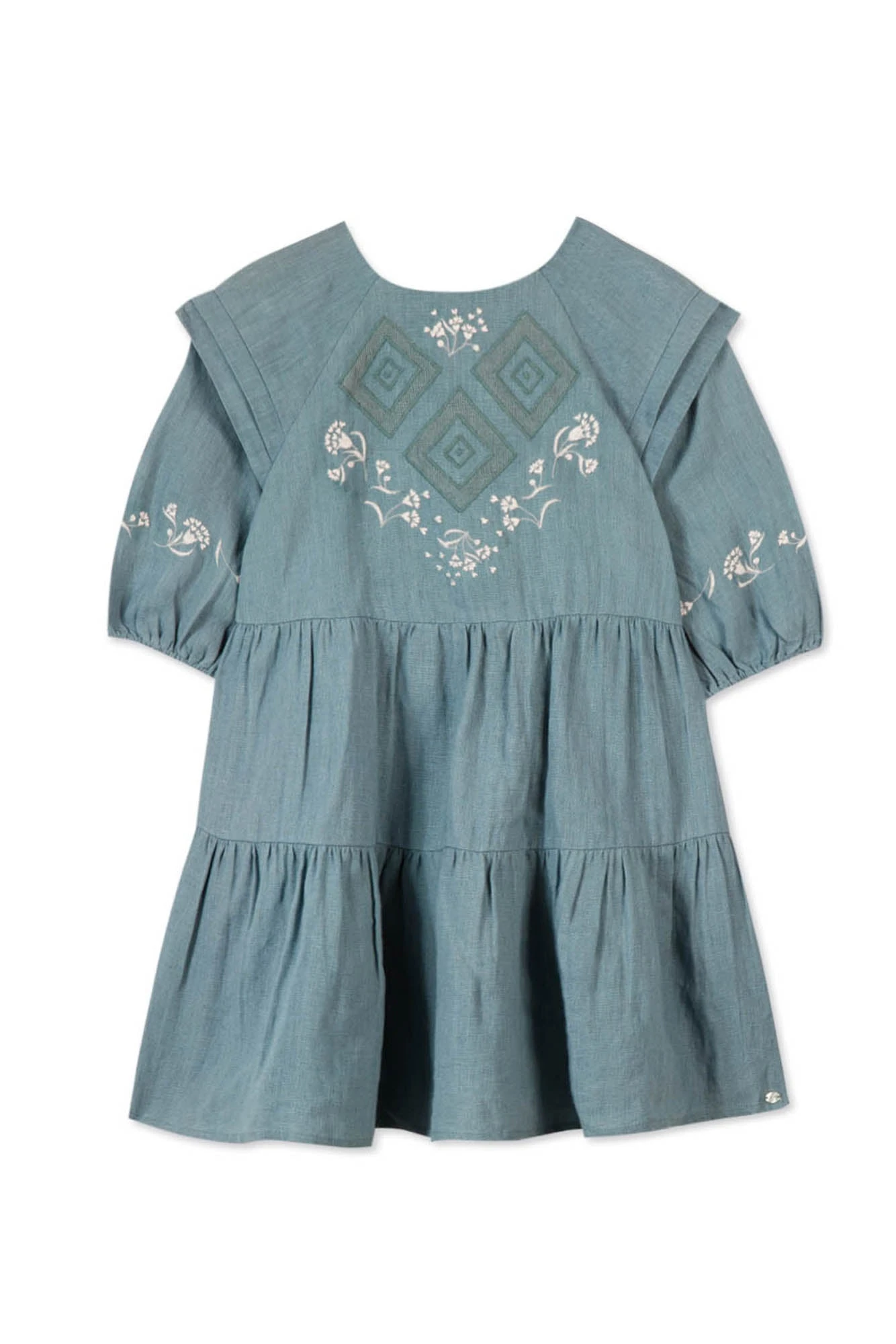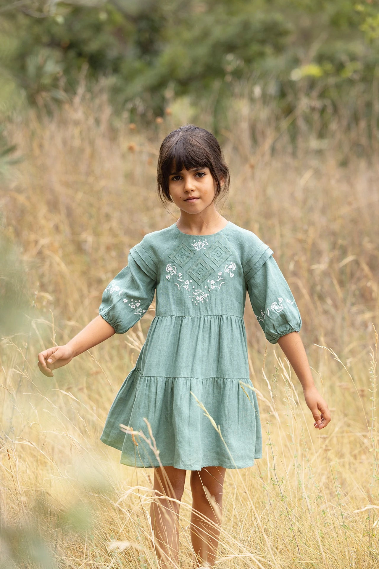 Délicate et légère, cette robe couleur verte est un véritable vent de fraicheur pour cet été. On craque sur ses adorables broderies, ses manches bouffantes et son col rond qui apportent une touche supplémentaire de raffinement. Avec sa matière en 100% coton, votre petite fille sera confortable et à l’aise pour tous les moments de sa journée. Idéale pour le quotidien : les sorties au bord de la plage, les soirées de l’été et les rendez-vous entre copines. On aime la porter avec un cardigan de la même collection pour un total look.