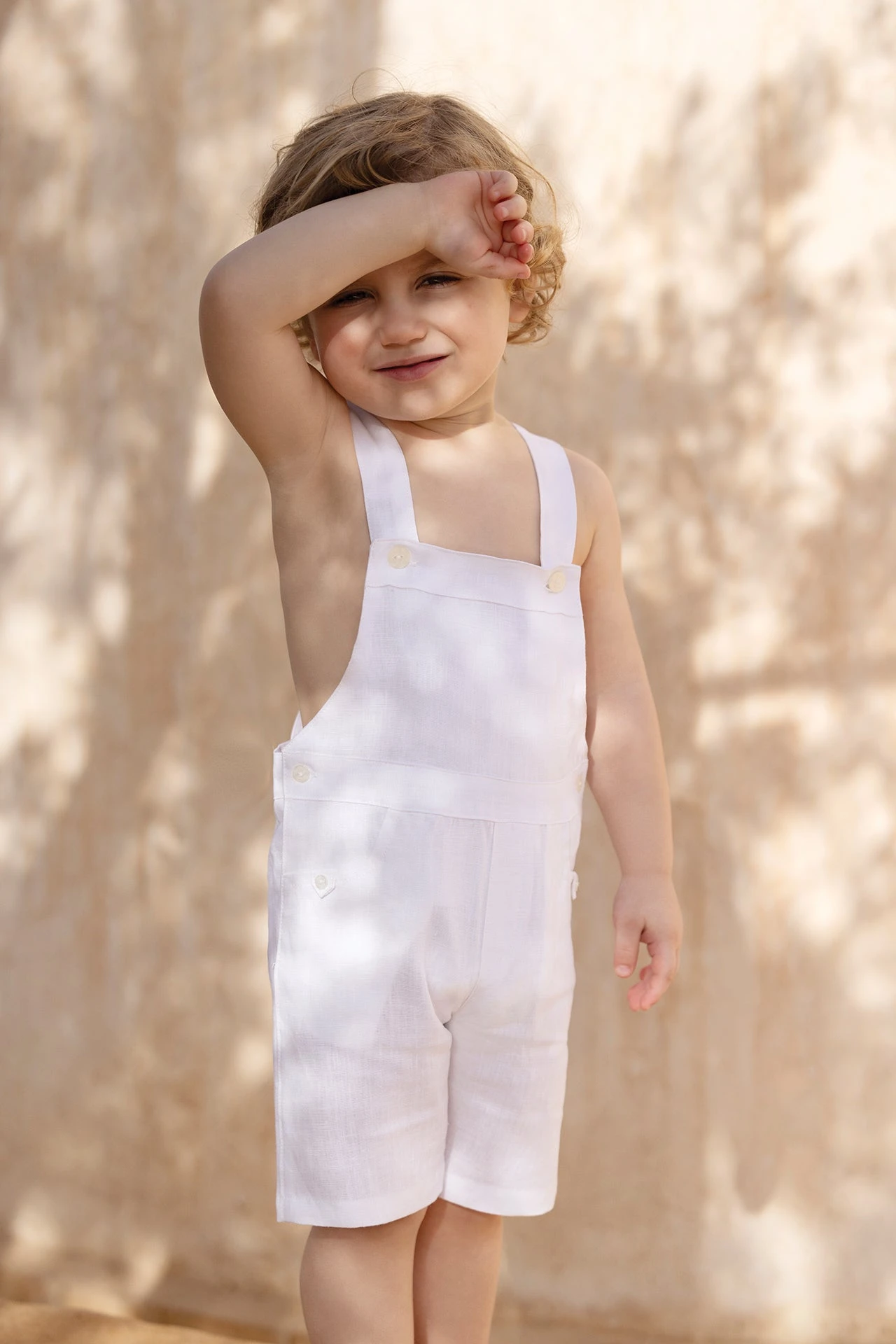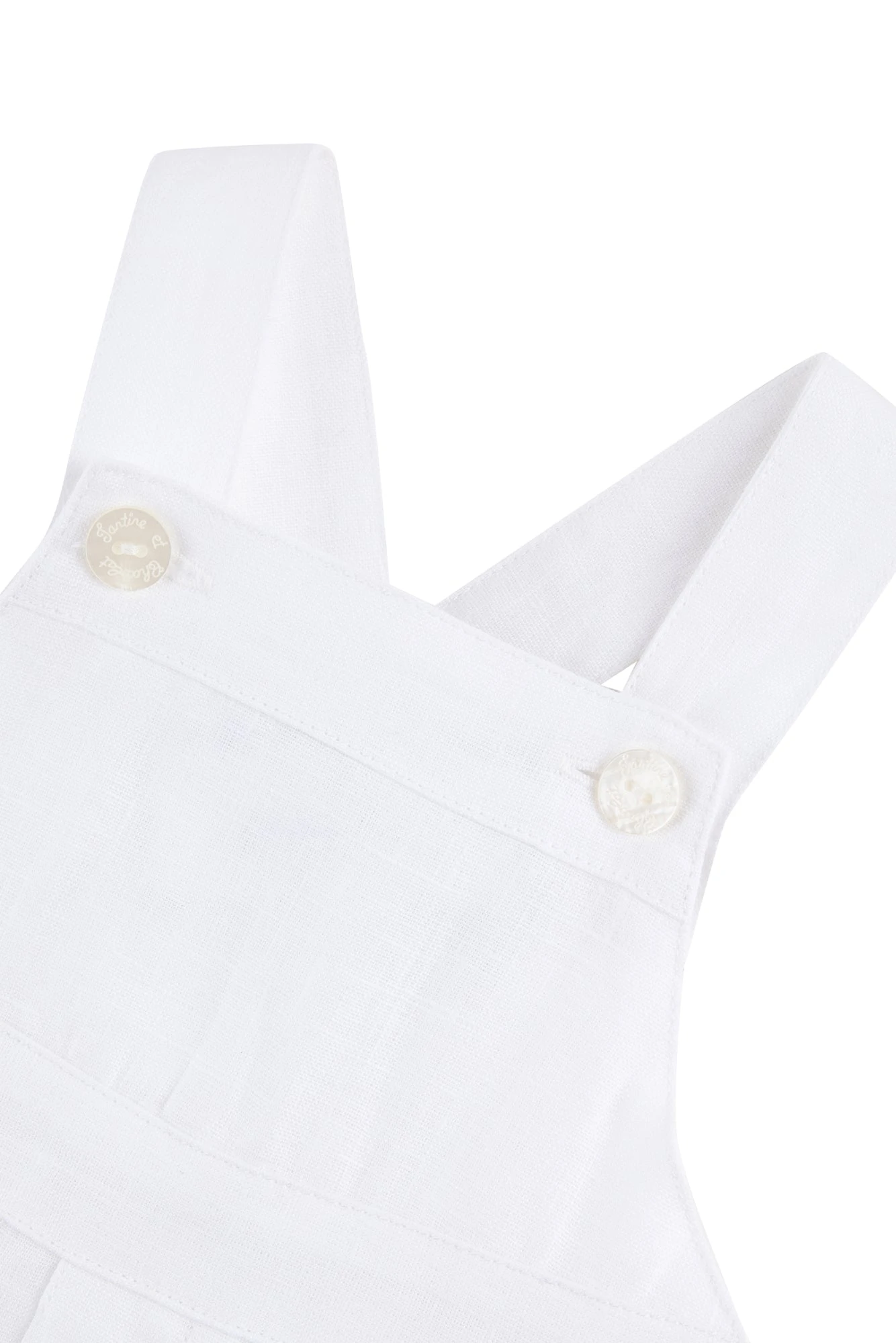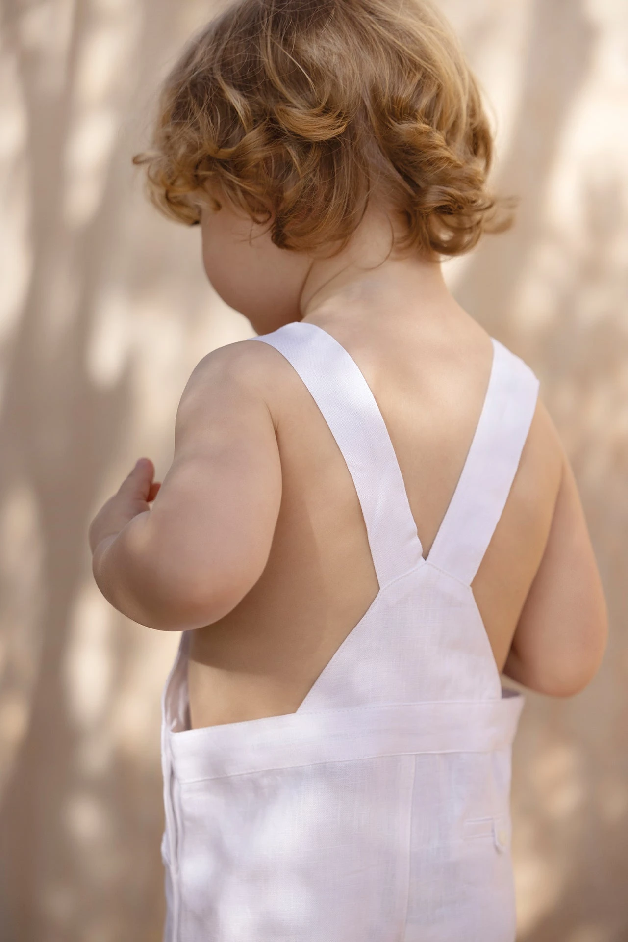 On craque pour cette magnifique salopette courte blanche en 100% lin qui rendra bébé aussi élégant que les plus grands lors de cérémonie. Les bouton pressions aideront à faciliter l’habillage. On se plait à l’associer à un joli body de la même collection cérémonie bébé garçon pour un total look.
