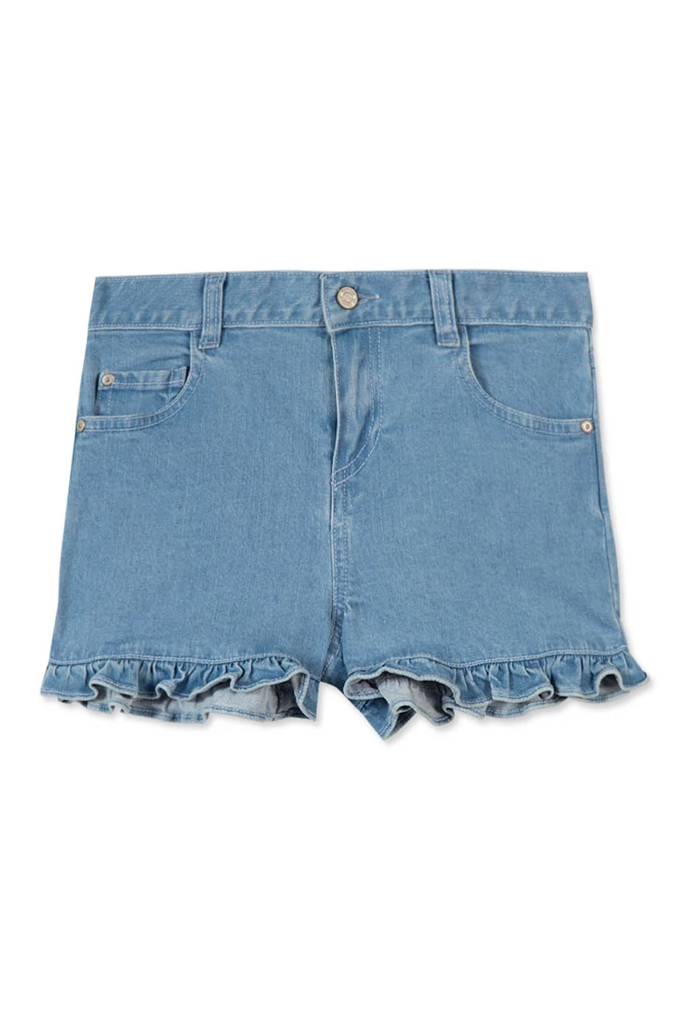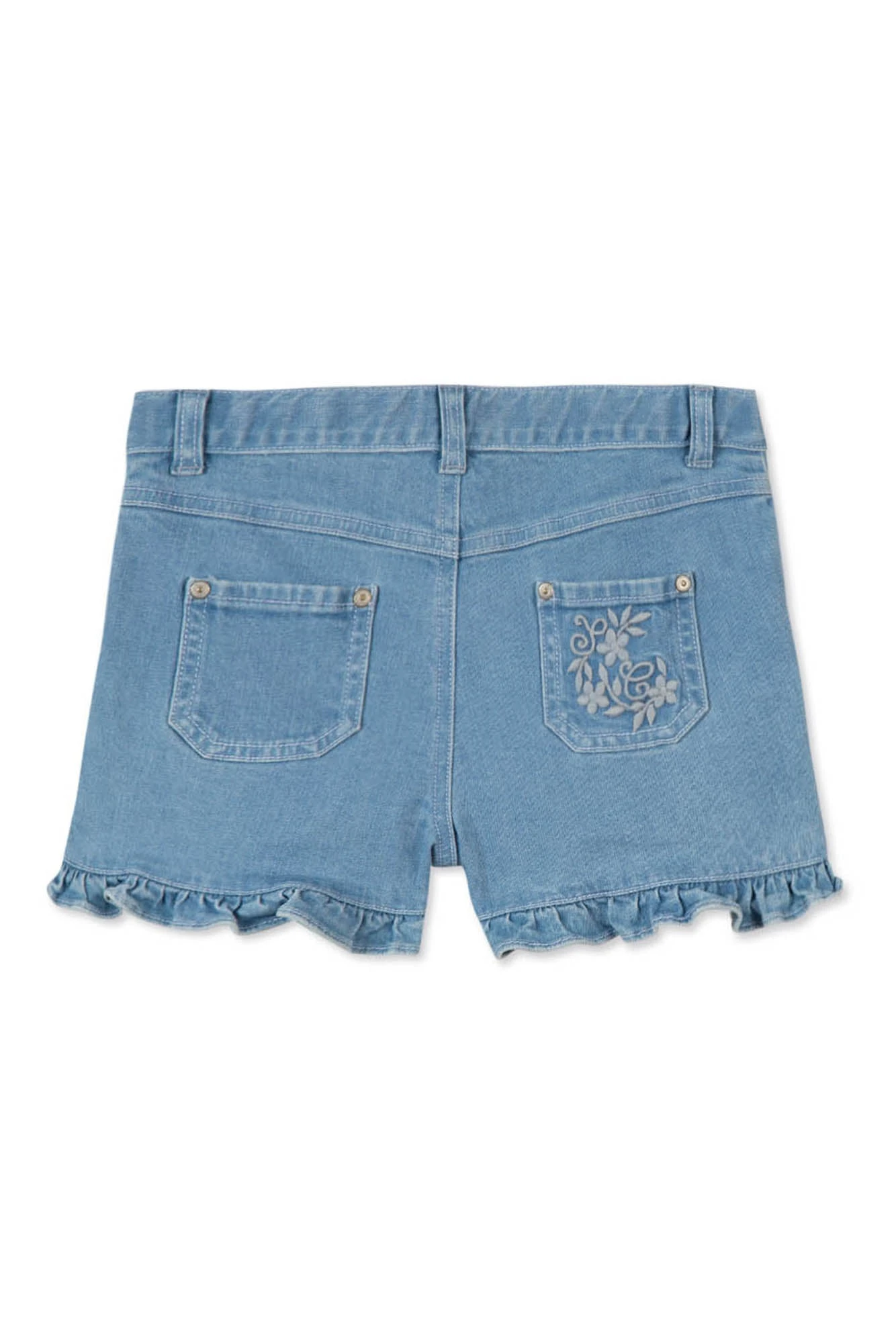 Ce short doux et confortable en coton est une pièce must-have de la saison estivale. Son coloris bleu denim et ses détails volantés apportent de la douceur aux looks des petites filles. On aime ses finitions et ses surpiqûres. Pour un total look, on aime le porter avec une jolie blouse de la même collection.