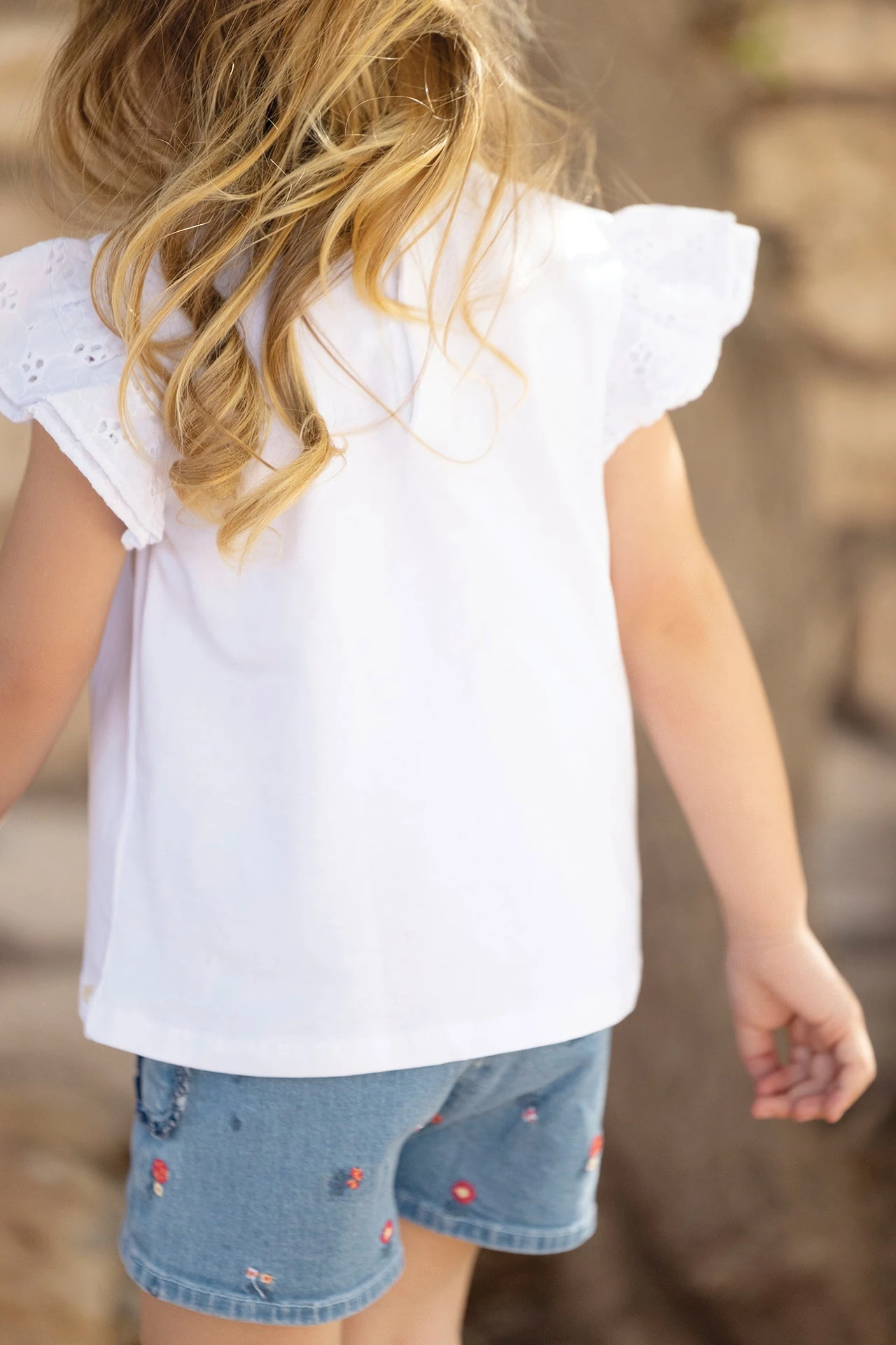Souple et délicat, ce joli t-shirt blanc aux manches volantées apporte fraicheur et élégance dans la garde-robe des petites filles. On craque sur son col rond apportant une touche supplémentaire de sobriété. Constituée essentiellement de coton, cette pièce sera idéale pour un été chic. Parfait à associer avec un joli short de la sélection pour un total look.