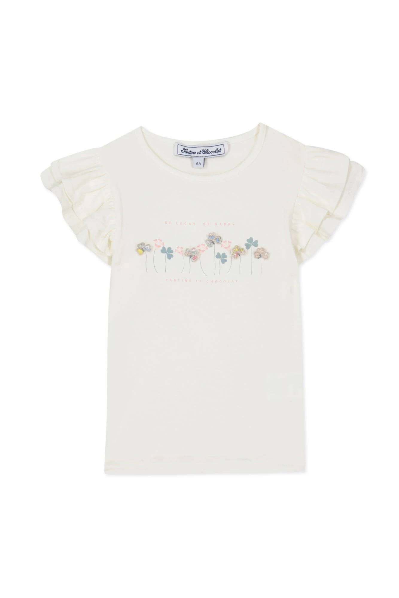 Ce doux t-shirt écru est agrémenté d’une adorable illustration fleurs. On craque pour sa douceur et ses manches volantées qui apportent une touche de raffinement aux tenues des petites filles. On adore l’associer à un joli short de la même collection pour un total look.