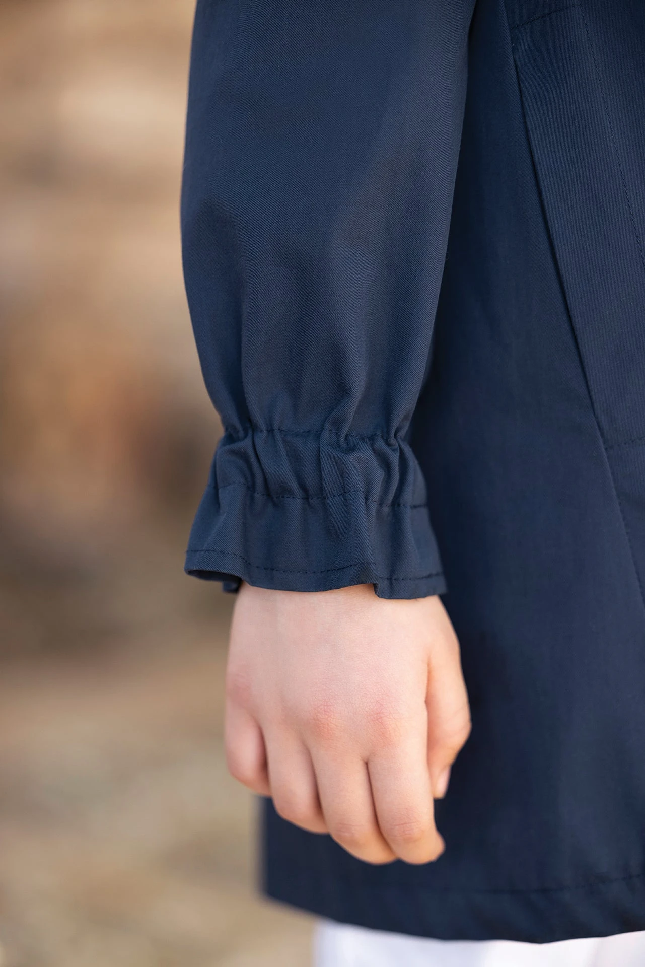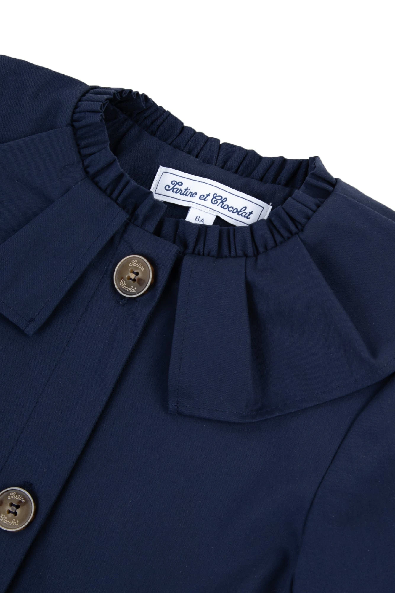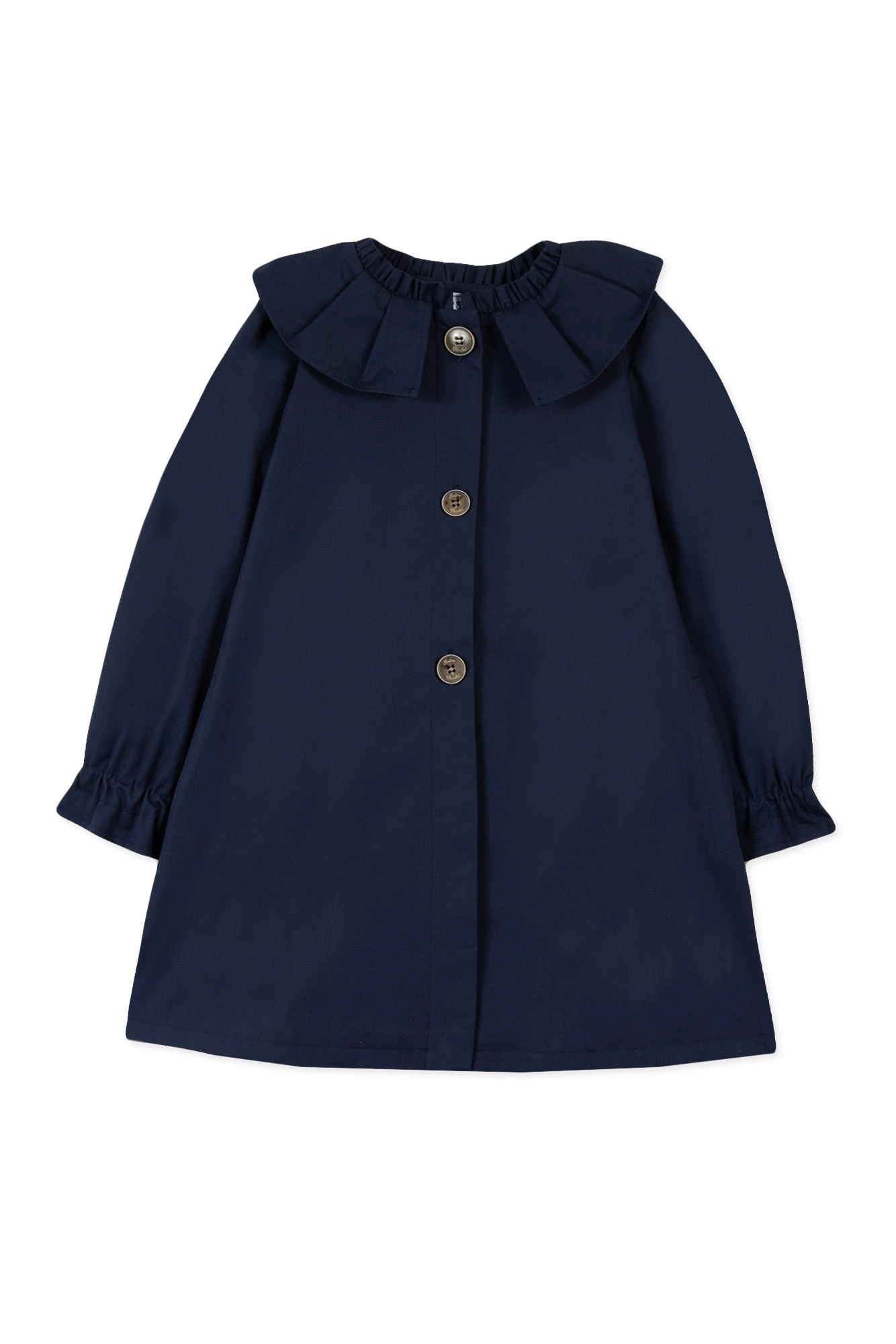 Ce trench beige marine au col volanté est un indispensable d’une garde-robe printanière. Sa coupe mi-longue, ses élégants boutons et ses jolis détails noués au niveau des poignets nous font craquer. Tendance et intemporel, il saura mettre en valeur le look des petites filles.