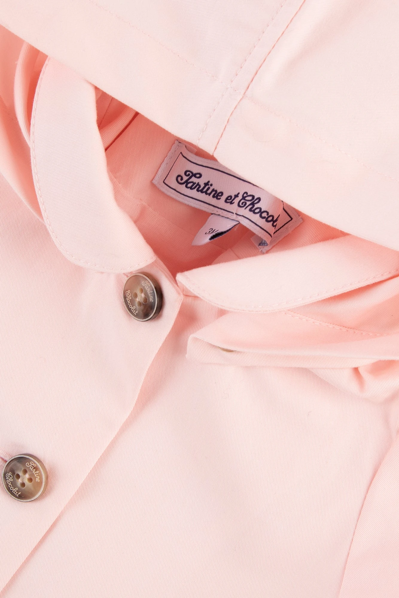 Décontracté et élégant, ce joli trench à capuche rose pâle est doux et souple grâce à sa matière en 100% coton et couvrira votre petite fille lors des journées plus fraiches. Son col claudine lui donne de l’élégance tandis que ses détails volantés lui apportent de la légèreté. Idéal pour l’entrée de saison, il ravira bébé à l’arrivée des premières brises, on aime le porter avec un ensemble tunique et pantalon.