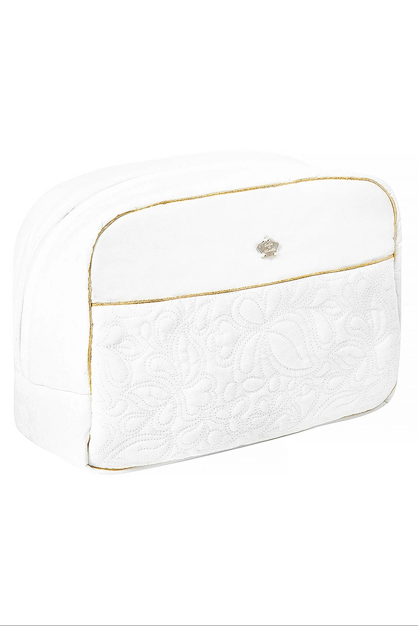 Trousse de toilette Délicatesse nacre, en percale de coton émérisée et broderies. Ouverture zippée. La ligne Garda : une ligne emblématique qui symbolise tout l’esprit Tartine et Chocolat. Des rayures chics et élégantes, associées aux couleurs pastel de l’enfance, un écusson finalement brodé, des tissus doux et tendres. Dimensions : 17 x 22 cm. La ligne Délicatesse : Le raffinement et l’élégance de cette ligne illuminent l’univers féérique de la petite fille. Plastron en percale brodée, fils d’or et signature nacrée réhaussent avec modernité les lignes épurées de cette collection. Fabriqué au Portugal. TG79039-13