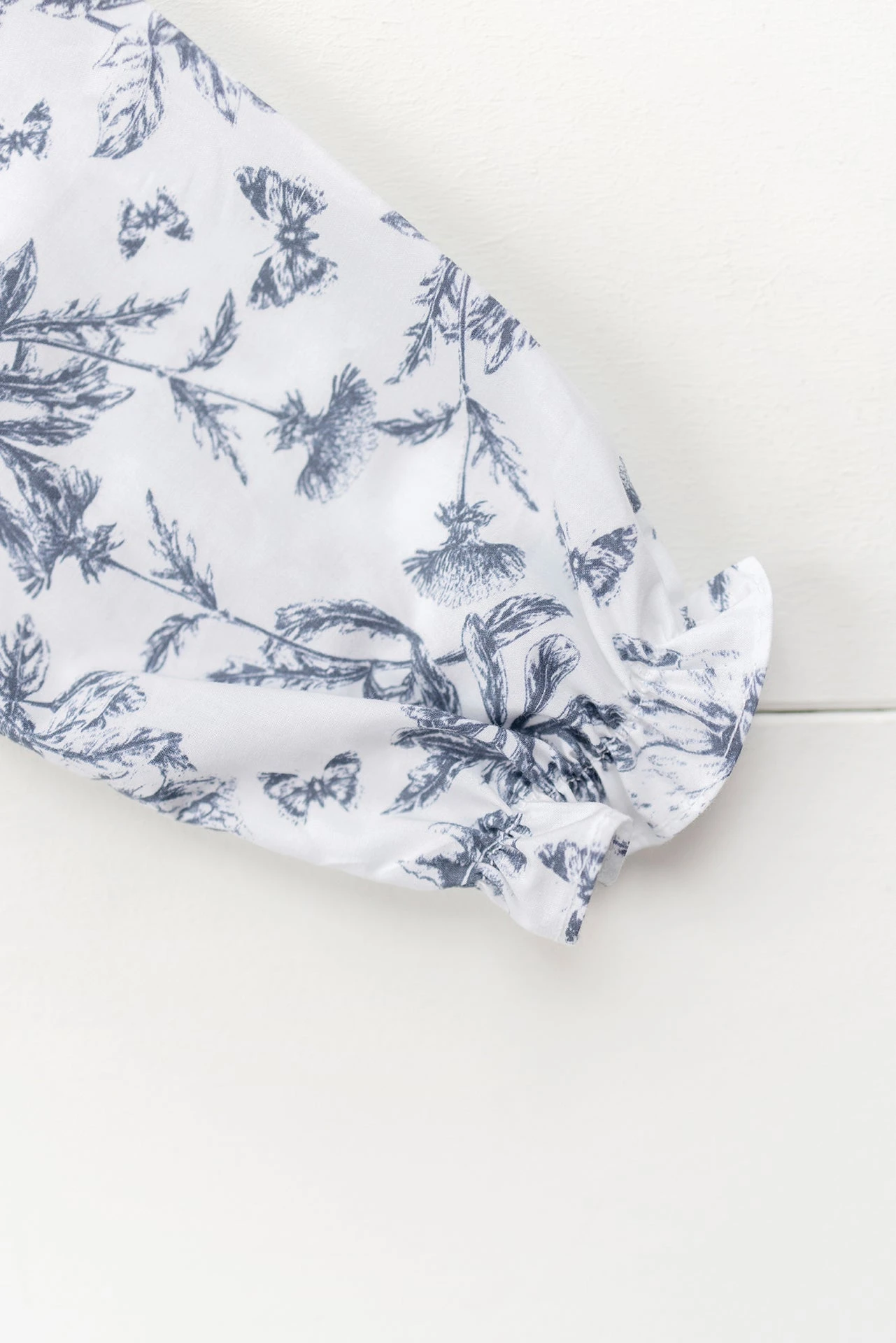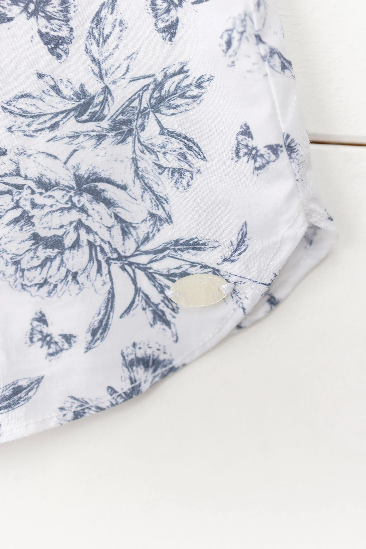 On craque pour cette tunique en popeline douce imprimé inspiration Toile de Jouy. Son col volanté ainsi que ces boutons effet nacre apportent une touche d’élégance et de raffinement.