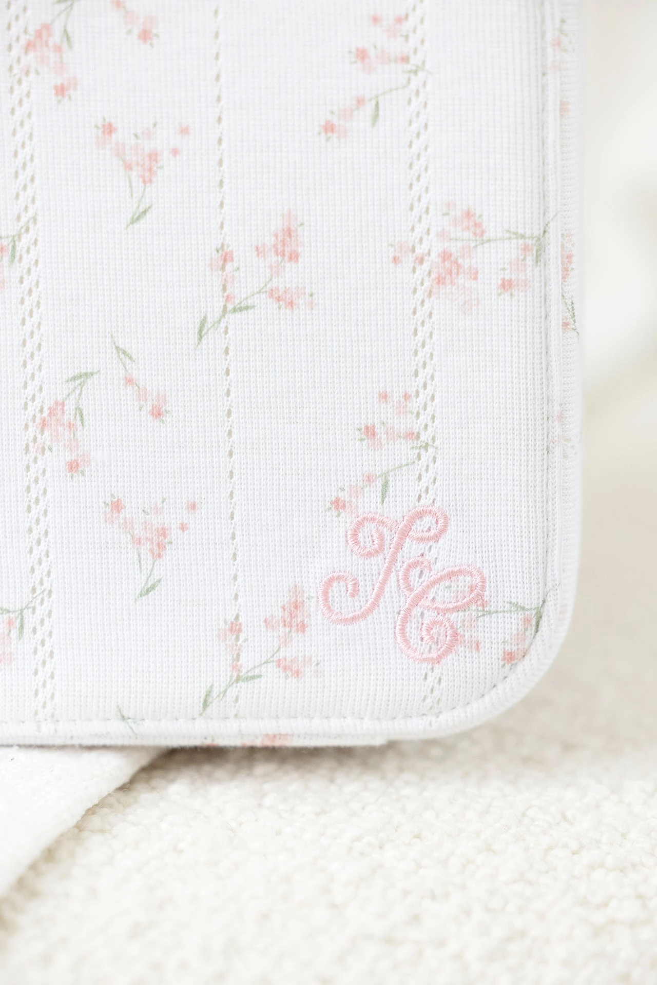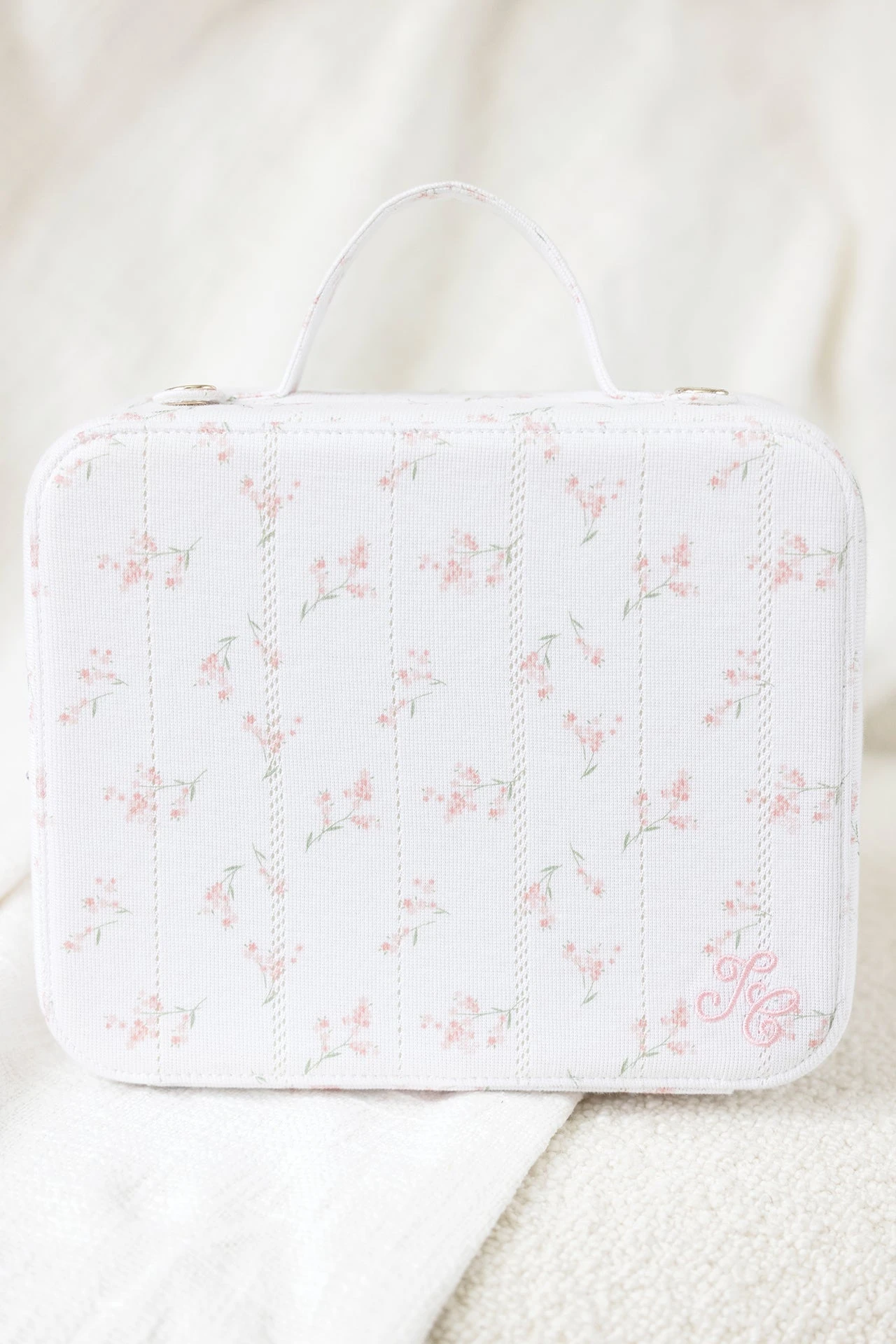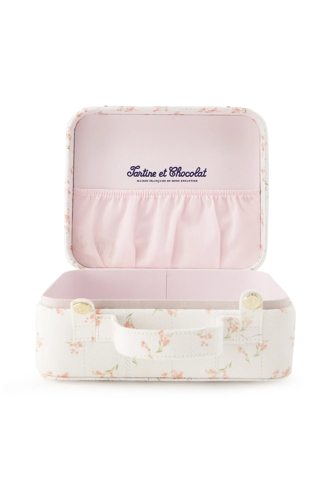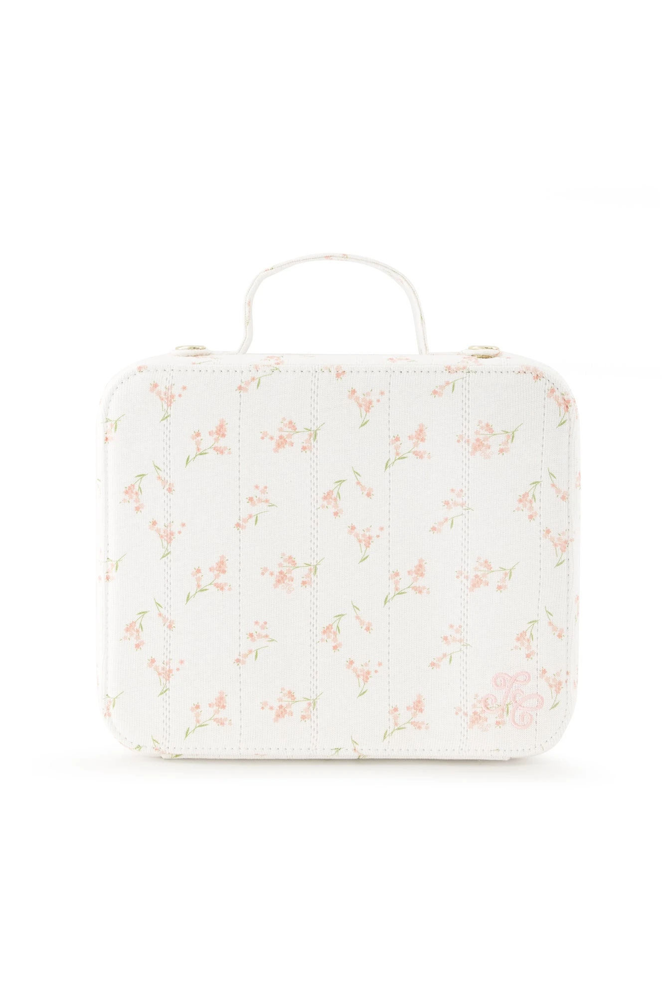 La valisette naissance fille en coton tout doux ajouré, dans un imprimé floral frais et romantique, agrémentée d’une broderie TC, parfait pour un cadeau de naissance. En harmonie avec le pyjama, cet accessoire est parfait pour accueillir les indispensables du quotidien des bébés : tétines, doudou, peluche, lange.